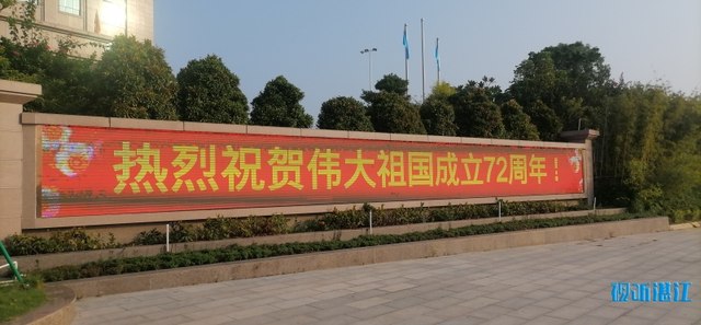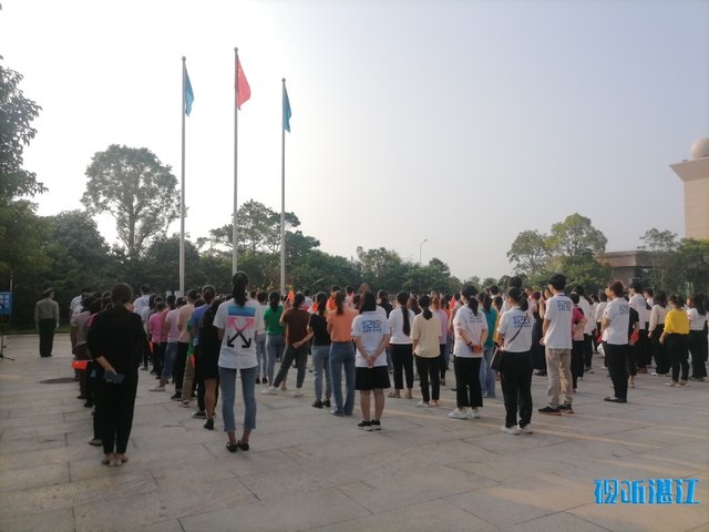 在广东省产业园国联水产(吴川)对虾产业园的国联水产公司总部,面面国旗迎风招展,门口的大型LED屏打出“热烈祝贺伟大祖国成立72周年”的标语,充满节日的喜庆气氛。企业员工和家属们手持小国旗,胸前和脸上贴着中国心标志,在广场整齐列队,迎接国旗。随着口令,国旗护卫队员迈着整齐的步伐,护送国旗登上升旗台。迎着朝阳,在雄壮的国歌声中,鲜艳的五星红旗冉冉升起。