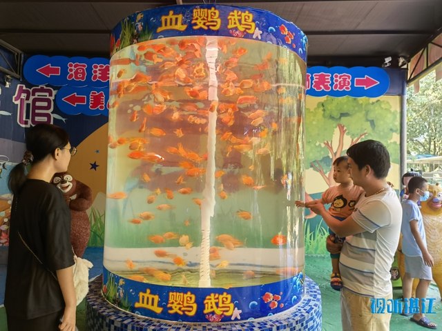 在寸金动物园门口,正在表演的不倒翁小姐姐也受到了大人和孩子们的喜爱。动物园里,憨态可掬的小兔子、活泼的小黑羊、温顺的长颈鹿以及海狮表演、人鱼表演等都吸引着人们的目光,处处展现出人与自然和谐共处的画面。