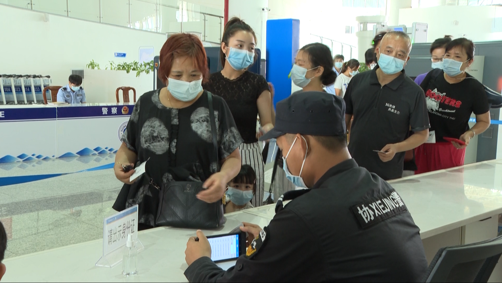 中午的十二点,记者在徐闻港的出发大厅的安检区看到,客流量比往常多,现场旅客正在有序地进行安检。