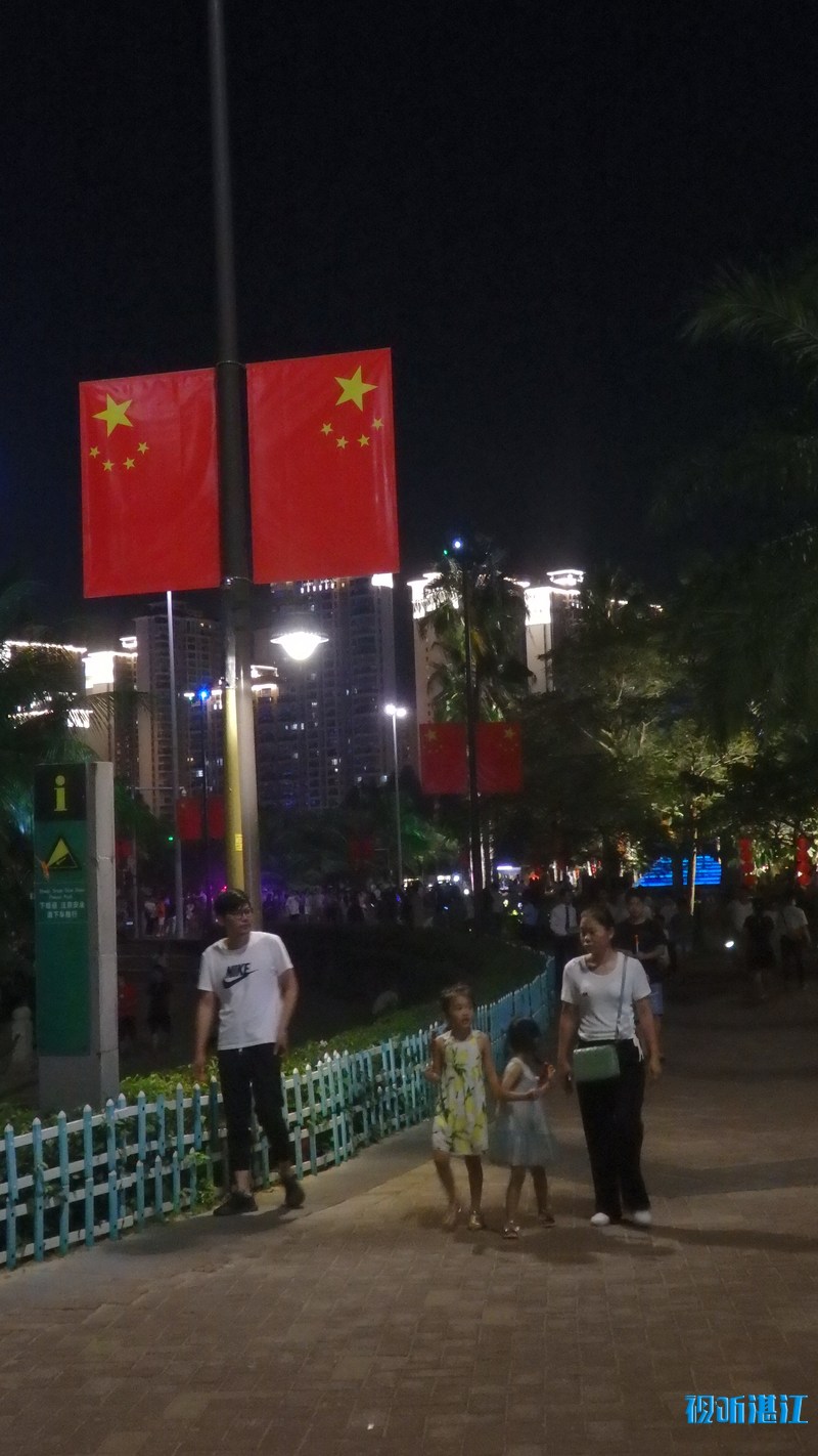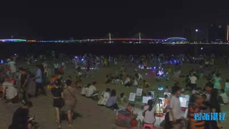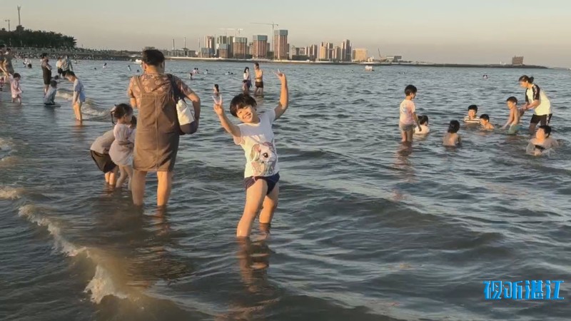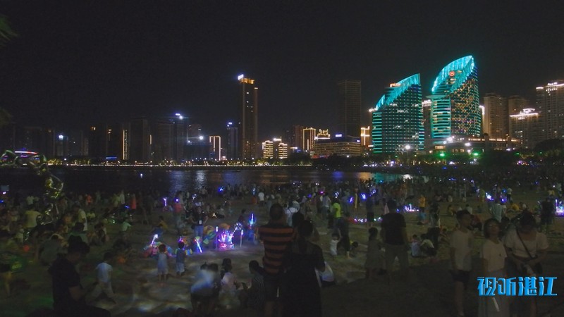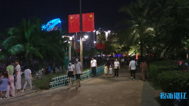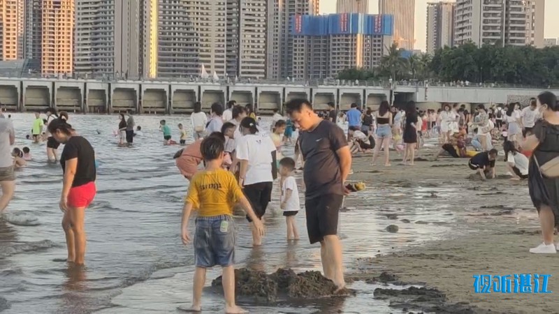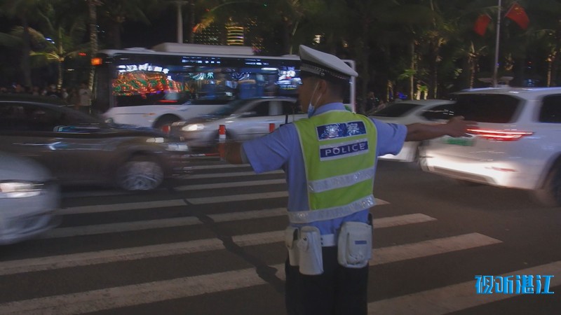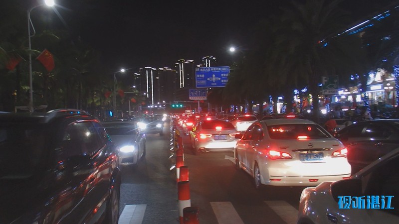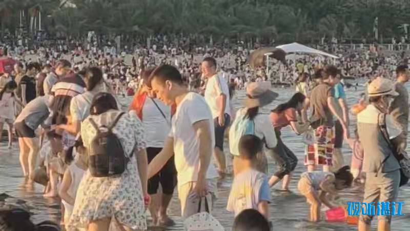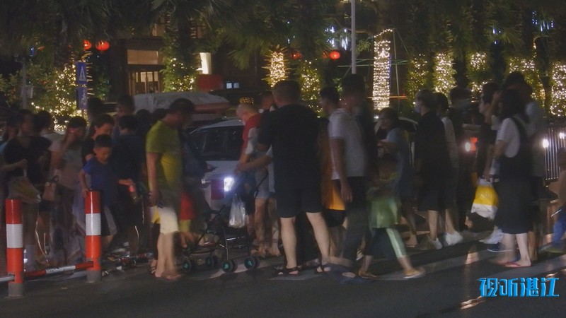 10月2日下午,记者来到市中心的4A景区金沙湾滨海休闲旅游区,入眼是熙熙攘攘的人群。人们在沙滩上漫步、玩沙戏水、拍照,能容纳数万人的沙滩竟然显得有些拥挤。入夜,璀璨的霓虹闪烁,在水中倒影充满梦幻。孩子们在弹射发光飞箭玩具,像一道道流星划过夜空。人们游兴不减,景区附近道路车流大增,人群络绎不绝。赤坎交警大队机动队的民警和辅警紧急增援过来维持交通秩序。他们根据现场情况,截断车流,让行人安全进出景区。人多的时候,能有近百人同时在同一个路口过斑马线。