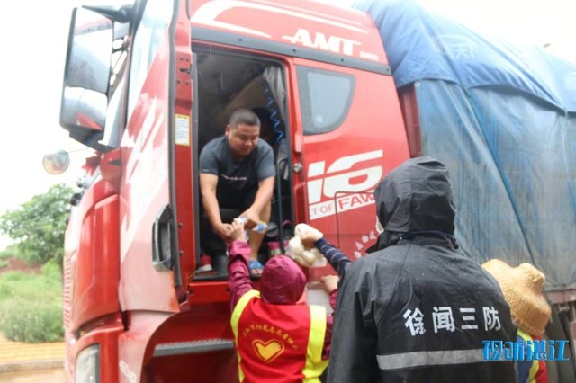 据了解,13日上午,徐闻县应急局等部门组织工作人员和志愿者近200人为滞留司机和随车人员免费派送矿泉水、面包7000份和盒饭500份。此外,徐闻县阳光志愿者携手中国人民财产保险股份有限公司徐闻支公司给滞留司机和随车人员送上盒饭900份、矿泉水1200瓶、面包1600个。