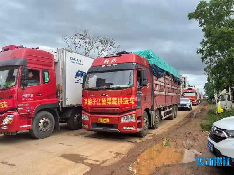 中午12点,北港轮渡码头第二艘轮渡准备发出,港口工作人员正在组织车辆有序登船,在滞留车辆里面,仍然是为农产品车辆开辟绿色通道,以及时供应海南省的市场需求。