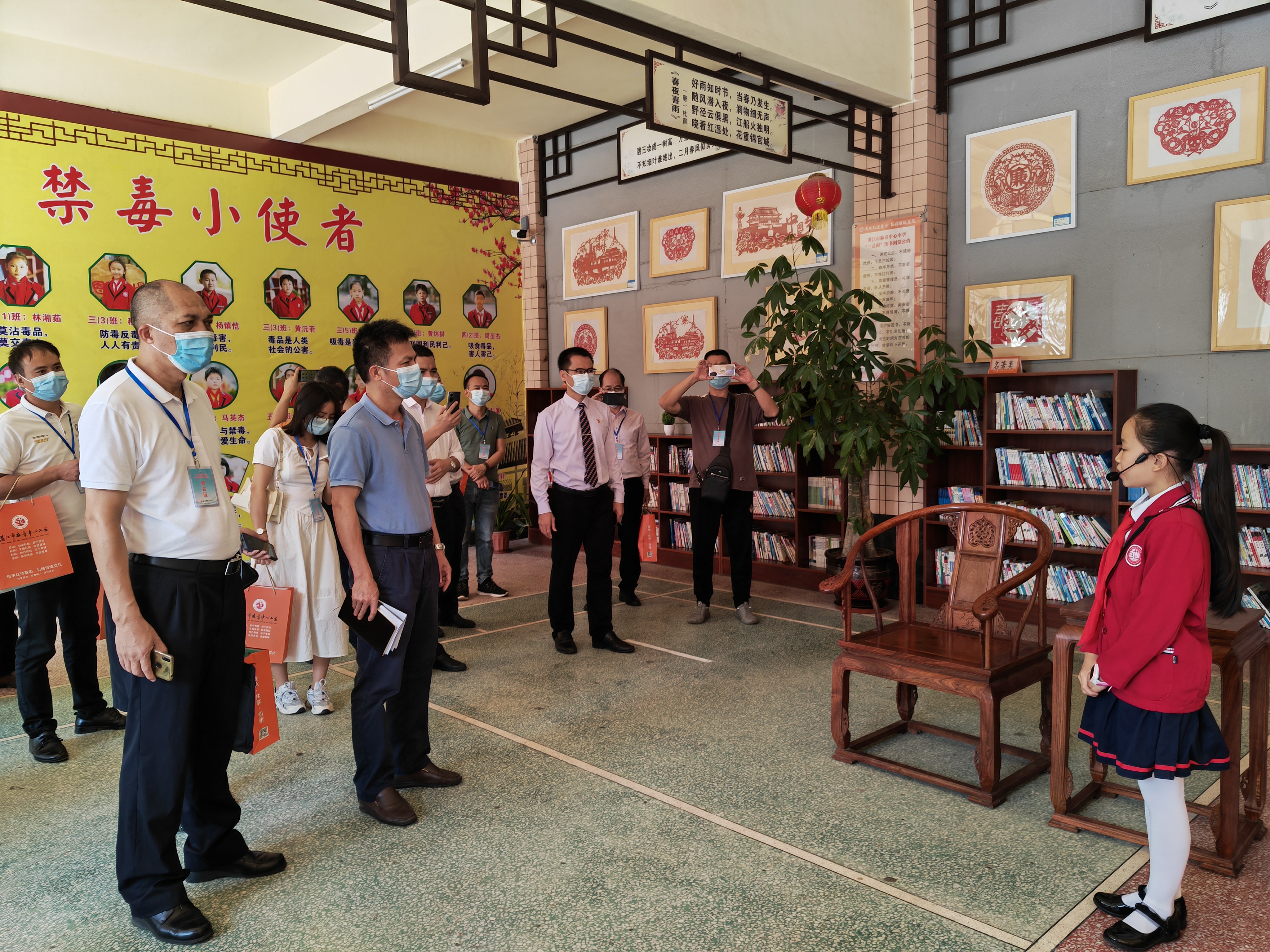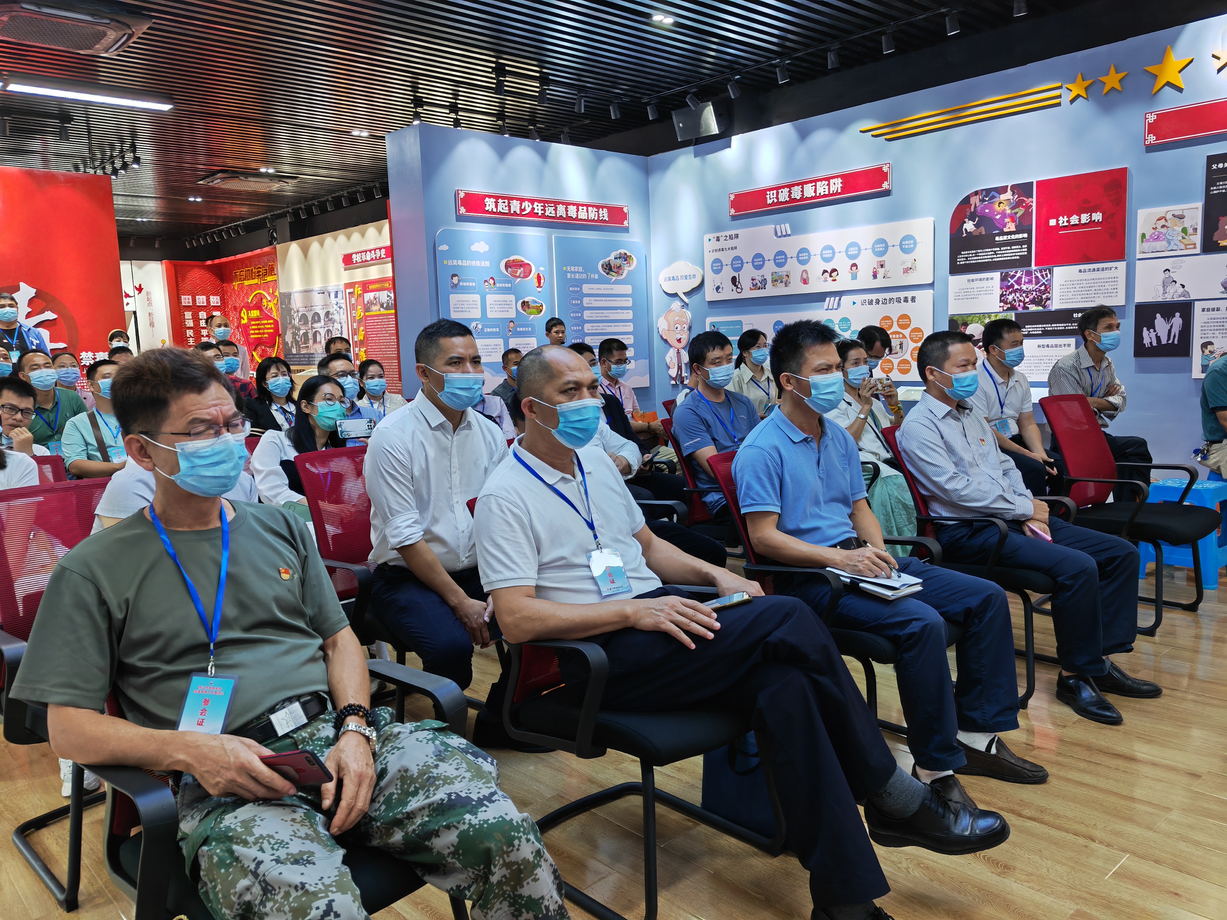 与会人员参观了麻章中心小学校园阵地,观看麻章区太平中心小学、麻章中学、湖光中心小学禁毒名师微课堂。