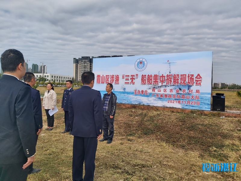 为防范海上渔业安全事故和涉外事件的发生,加强海上安全治理,11月23日,霞山区在广东省海洋综合执法支队直属三支队码头举办涉渔“三无”船舶集中拆解现场会,依法集中拆解25艘涉渔“三无”船只。