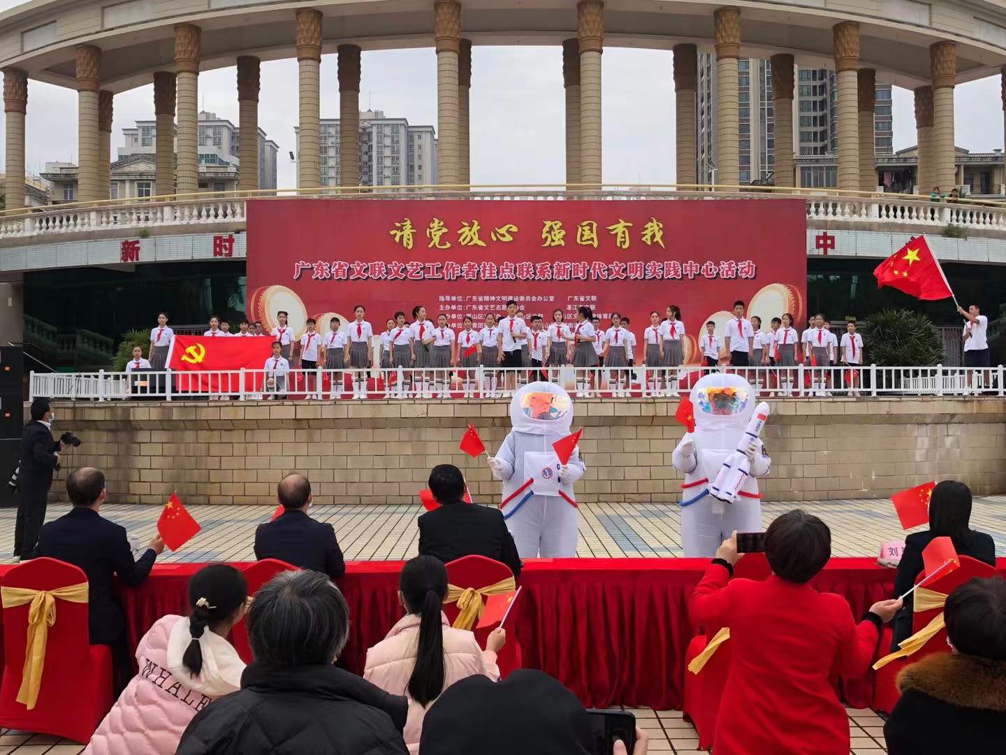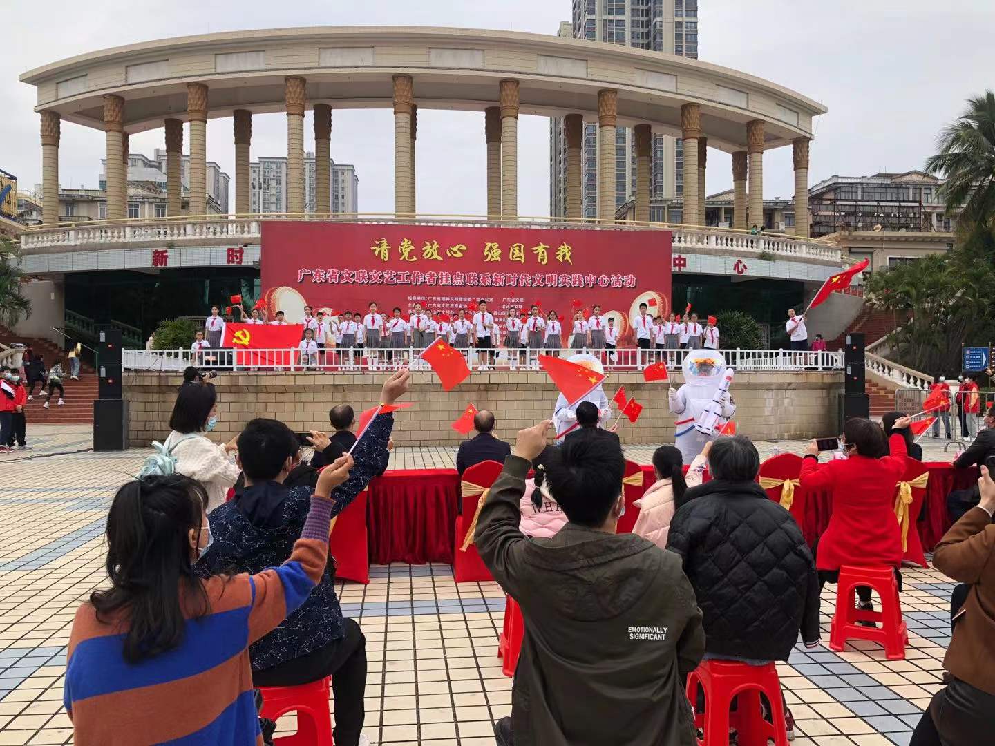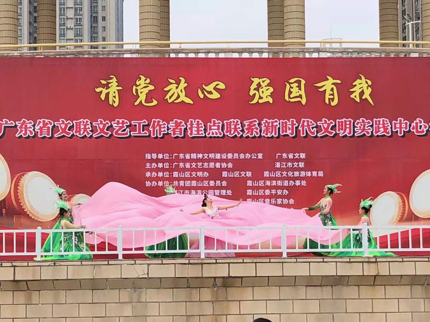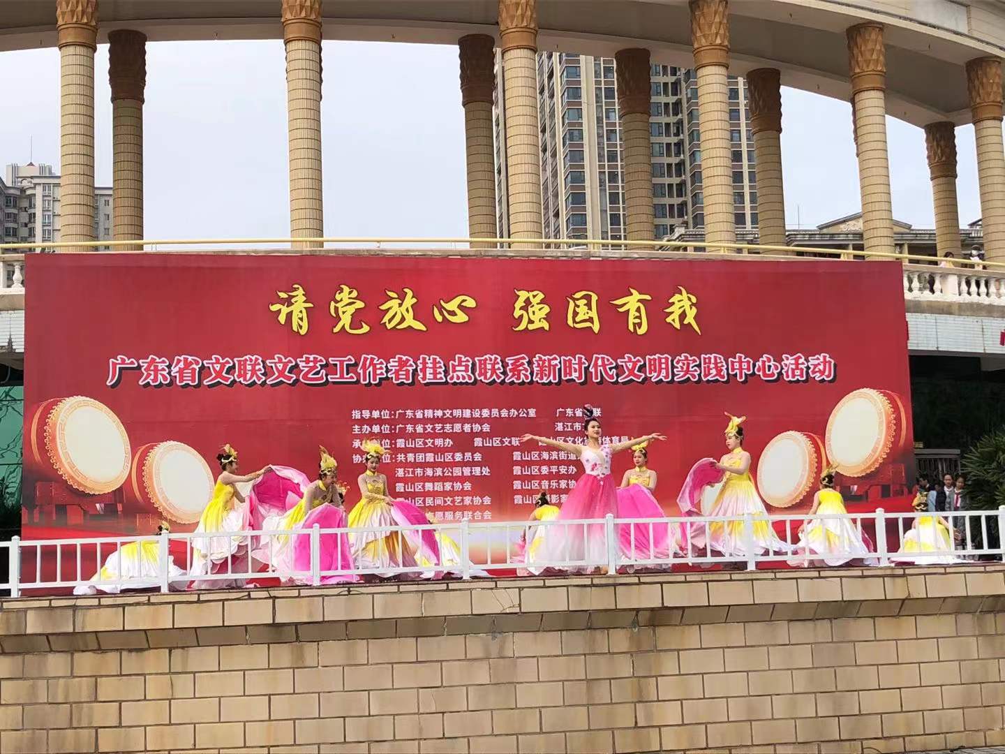 在省文明办、省文联的指导支持下,12月19日,由省文艺志愿者协会、湛江市文联共同主办,霞山区文联承办的“请党放心 强国有我”广东省文联文艺工作者挂点联系新时代文明实践中心主题活动在湛江市海滨公园举行。活动通过群众喜闻乐见、主题健康的文艺演出形式,让老百姓在文明实践中领悟新思想,培养爱国爱党情怀。