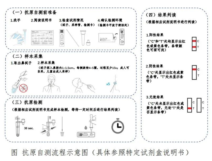 2、了解检测流程。仔细阅读抗原自测试剂配套说明书及抗原自测相关注意事项。