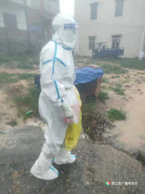 大雨淹没了道路,雨水打湿了全身,雨滴模糊了视线,依然没有阻挡他们前进的脚步,广东医附院支援廉江良垌核酸检测医疗队为了确保不漏一人,披上一次性雨衣,打起雨伞,坚持完成任务,获得了群众们的纷纷点赞。