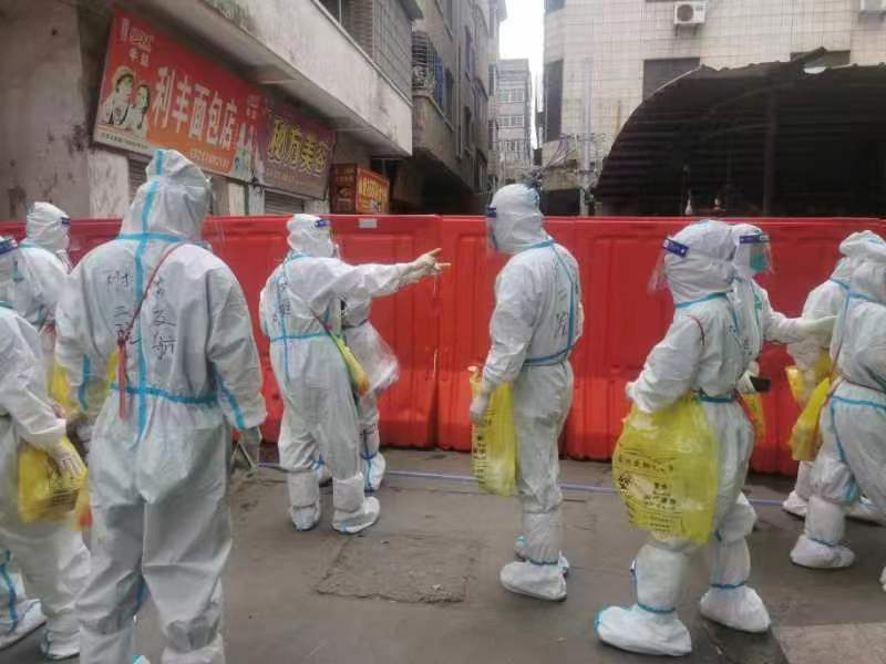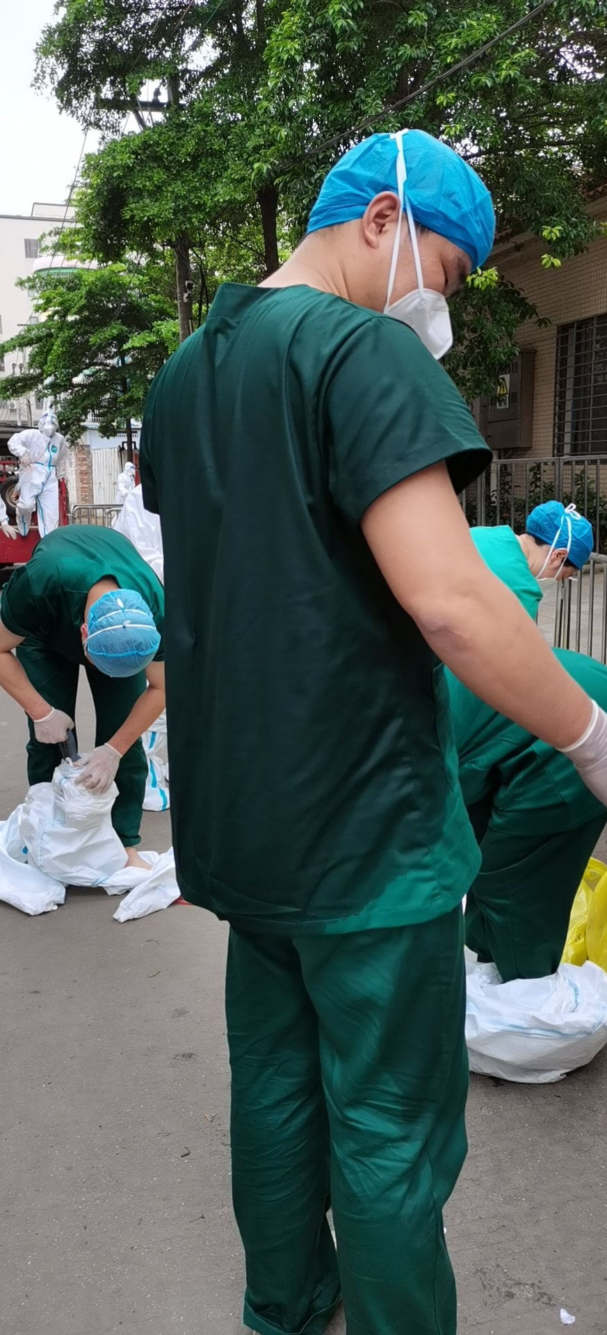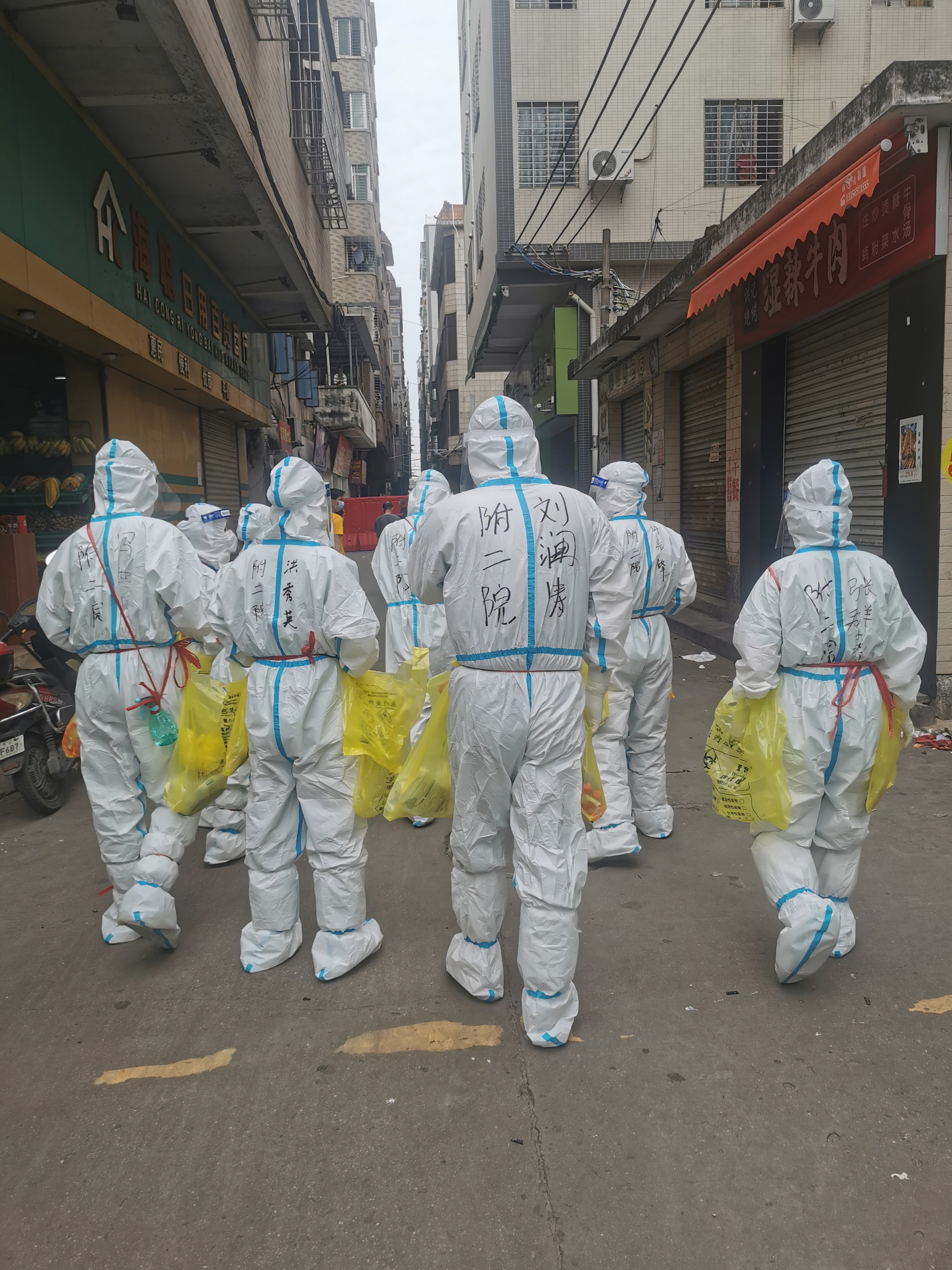 广东医科大学附属第二医院核酸采样应急队员身披“白铠甲”进入龙划新村封控区,奋战几小时后,出来个个像淋了雨一样,全身湿透,连脚址头都在冒汗!