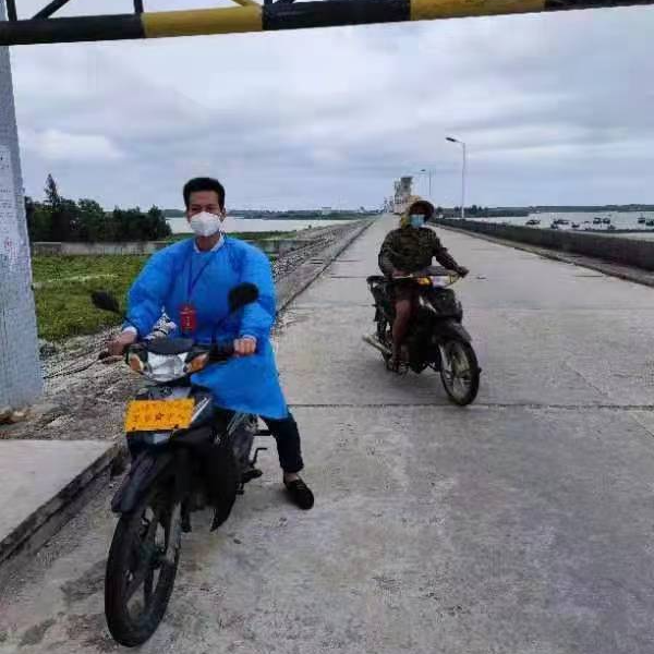 5月13日上午,一对夫妇骑着电动车来到南寨鉴江卡哨口,说要过两个卡哨点(含吴川市在鉴江堤坝另一端设立的卡哨点),他们在那边有虾塘需要打氧、喂食。先锋队队长骆水明让他们先扫场所码并逐一查验粤康码情况后,说明不能跨界到吴川区域,但考虑到生产急需,建议他们找一个吴川那边的人到接收打氧机、饲料,由我值守队员带他过到堤坝对面的吴川卡哨点。他们表示同意并口口声声多次感谢。先锋队员陈伟强到附近的鉴江枢纽工程管理处借来电动车,一前一后两辆电摩驰向堤坝对面,顺利帮助完成生产物料交接,夫妇俩离开时,对我们的做法表示赞赏并再次表示感谢。在这条2公里的堤坝上、两个卡哨点之间,守值队员在确保防控安全前提下,此前曾帮带两边群众送药及鉴江管理人员放闸排涝等生产生活上的燃眉问题。