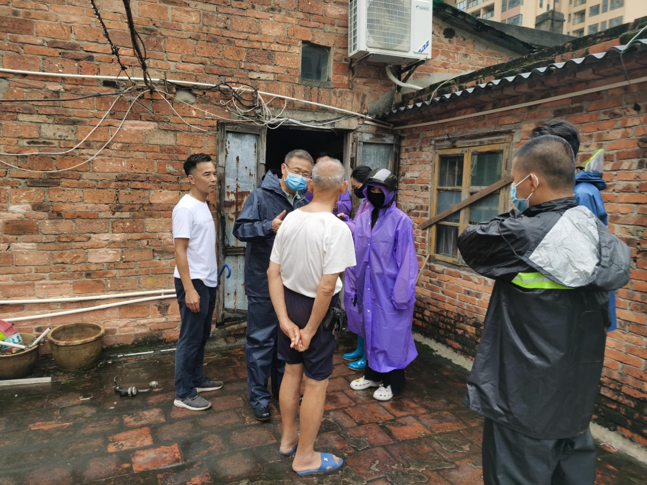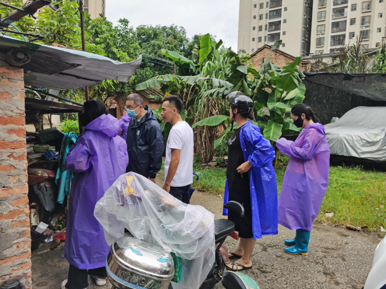 区政协梁叶主席、新兴街道党工委委员谢红霞、武装部部长叶朝晖,新霞社区党支部书记吴红燕及两委干部、执法队到油脂厂宿舍视察、动员危房群众转移。