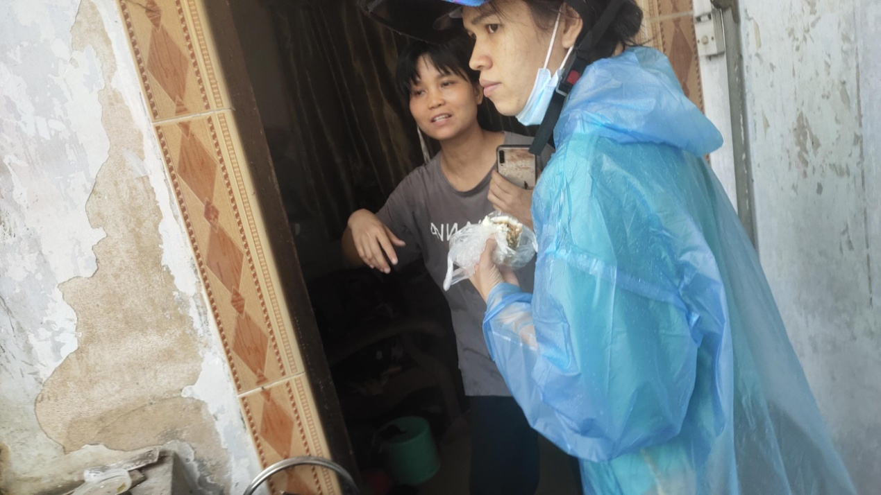 新霞社区副主任刘彩云全力动员居民转移,早餐也只能在动员的过程中对付一口。
