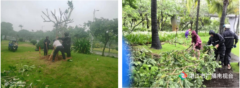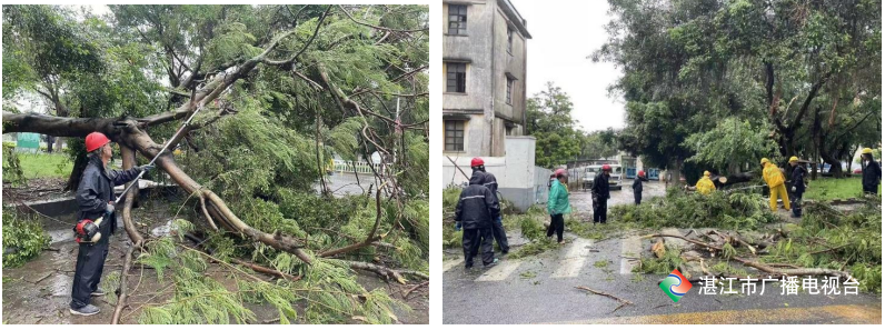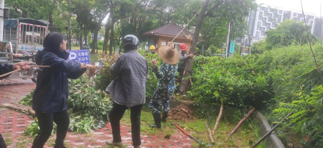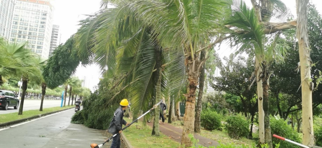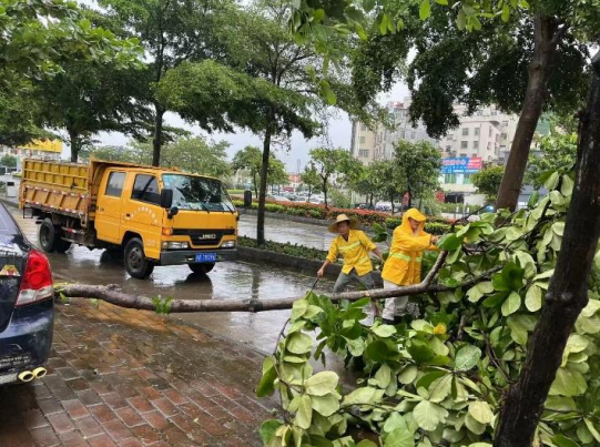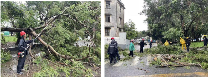 全力开展树木清障行动。大风造成市区机场路、海田路(北出口)、 寸金路等路段以及各公园园区内出现部分树木折断或倒伏。台风刚过, 市区园林行道树、市区公园管理应急抢险队立马出动,迅速进行对倒 伏、折断的树木进行清理,加快恢复路畅车通,恢复园区秩序。累计出动1529 人次,应急队伍 22 组,应急人员 362 人,清理折毁、倒伏 树木 239 棵,修剪清理树木断枝 300 处,扶正倒伏树木 62 株,保障 市民出行安全顺畅。