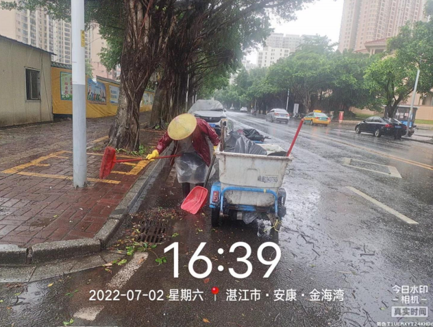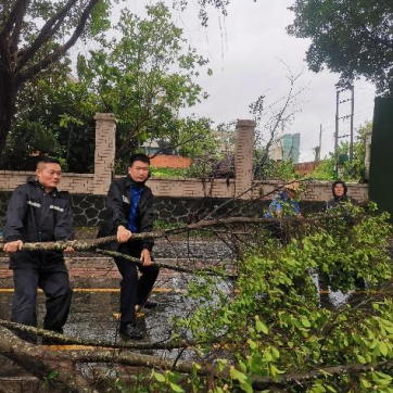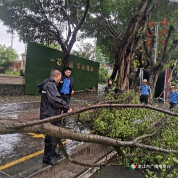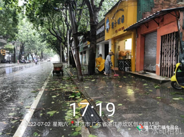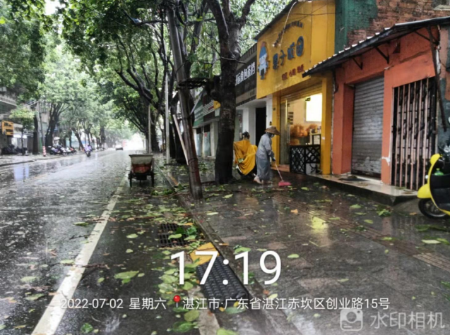 7 月 2 日下午,台风“暹芭”在电白沿海登陆后,暴雨还在持续 中,市城综局各应急抢险队伍冒雨赶赴工作岗位,迅速转向清障保通 工作,以最快的速度处置台风造成的各种市容环境受损问题,保障城 市运行安全顺畅。