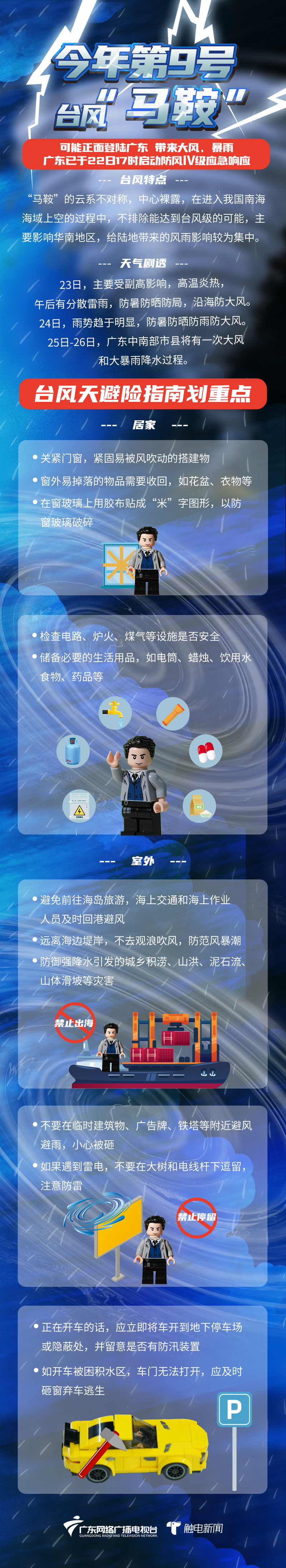 受“马鞍”影响,24日起,广东海面、南海北部海面风力将逐渐加大到9级~11级、阵风12级。25日-26日,广东中南部市县将有一次大风和大暴雨降水过程。“马鞍”进入南海后,其路径和强度以及给广东带来的风雨影响仍有较大不确定性,请密切关注最新预报预警信息。