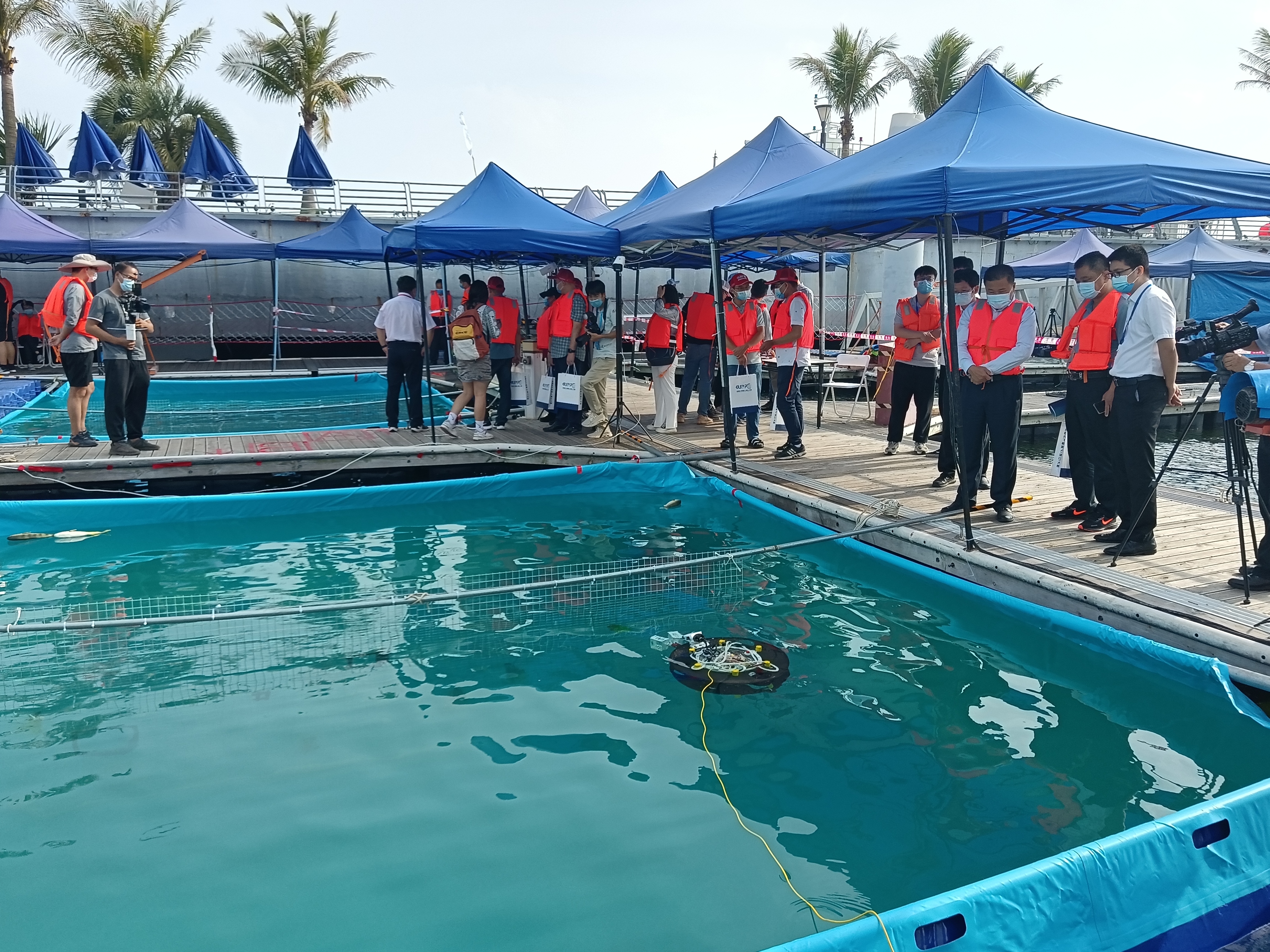 11月21日,由国家自然科学基金委员会指导,湛江市人民政府、鹏城实验室联合主办,湛江市科学技术局、湛江湾实验室、湛江市旅游控股集团有限公司承办的2022年全国水下机器人大赛在湛江市正式拉开帷幕。来自大连理工大学、广东海洋大学、南方科技大学、东南大学、桂林电子科技大学等高校的14支队伍将在湛江金沙湾海域开展为期2天的“同海竞技”,在海产养殖水下网箱清洗(抓水草)、网箱巡查及修补、海星捕捞等比赛项目上一决高下。