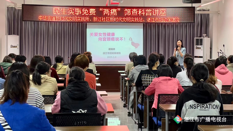 在赤坎区中华街道新江社区和湛江市广业生态环保公司,市妇幼保健院妇女保健科副主任谭婉婷先后与现场的姐妹科普了“两癌”的危害、感染途径等知识,以生动的案例分享了“两癌”筛查、接种HPV疫苗的重要性,并介绍了中医妇科养生知识,让更多女同胞了解妇幼健康民生实事政策和科普知识,呼吁女性朋友关注自身健康,正确预防宫颈癌、乳腺癌,让大家受益匪浅。