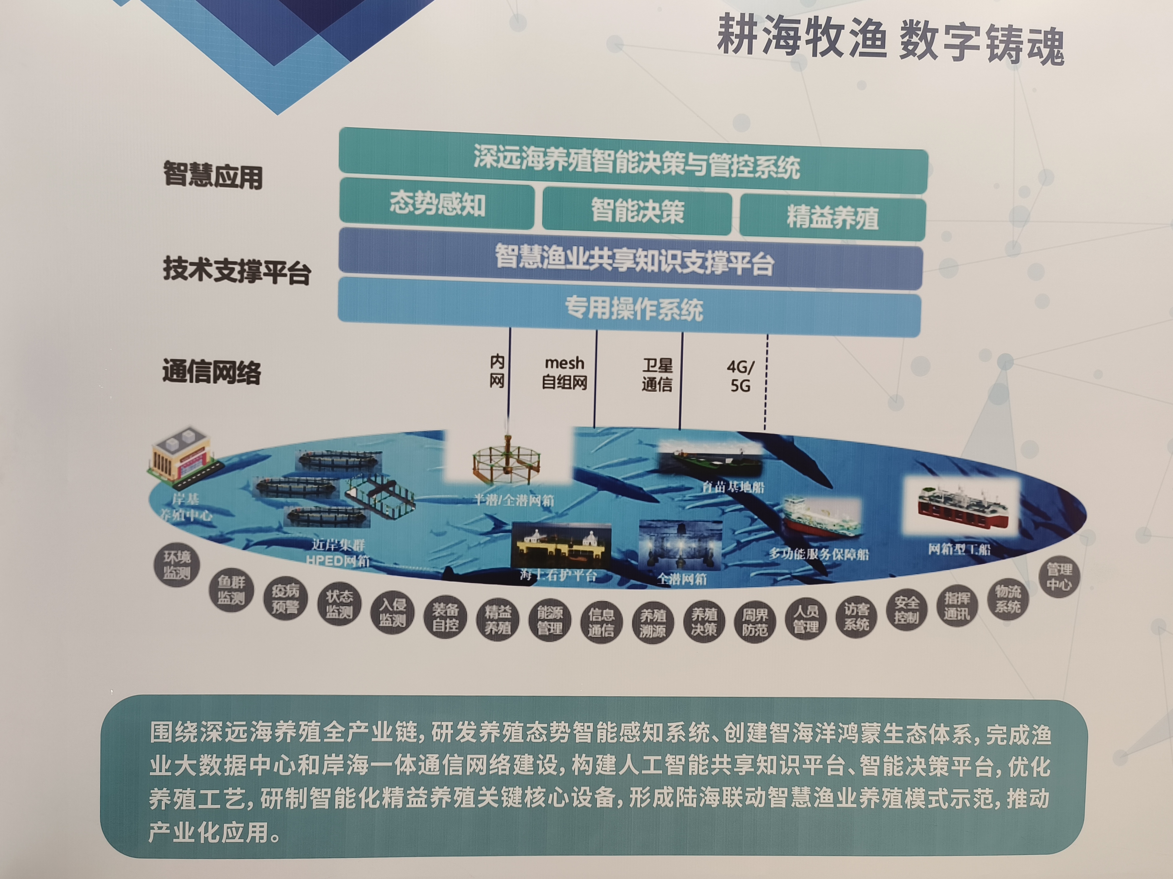 6月29日,湛江湾实验室渔业大数据中心正式启用。该中心致力于实现深远海养殖系统统一管理,数字赋能深远海水产全产业链,编制渔业养殖标准体系,有助于渔业数据的采集、存储和整合,避免形成“数据孤岛”,为渔业大数据的发展奠定规范基础。开发深远海养殖知识库系统,为智能控制、精准作业、养殖预警等提供智能决策支持。陆海联动技术链与产业链双线协同驱动,推动智能化养殖设备和系统的快速攻关与产业落地。