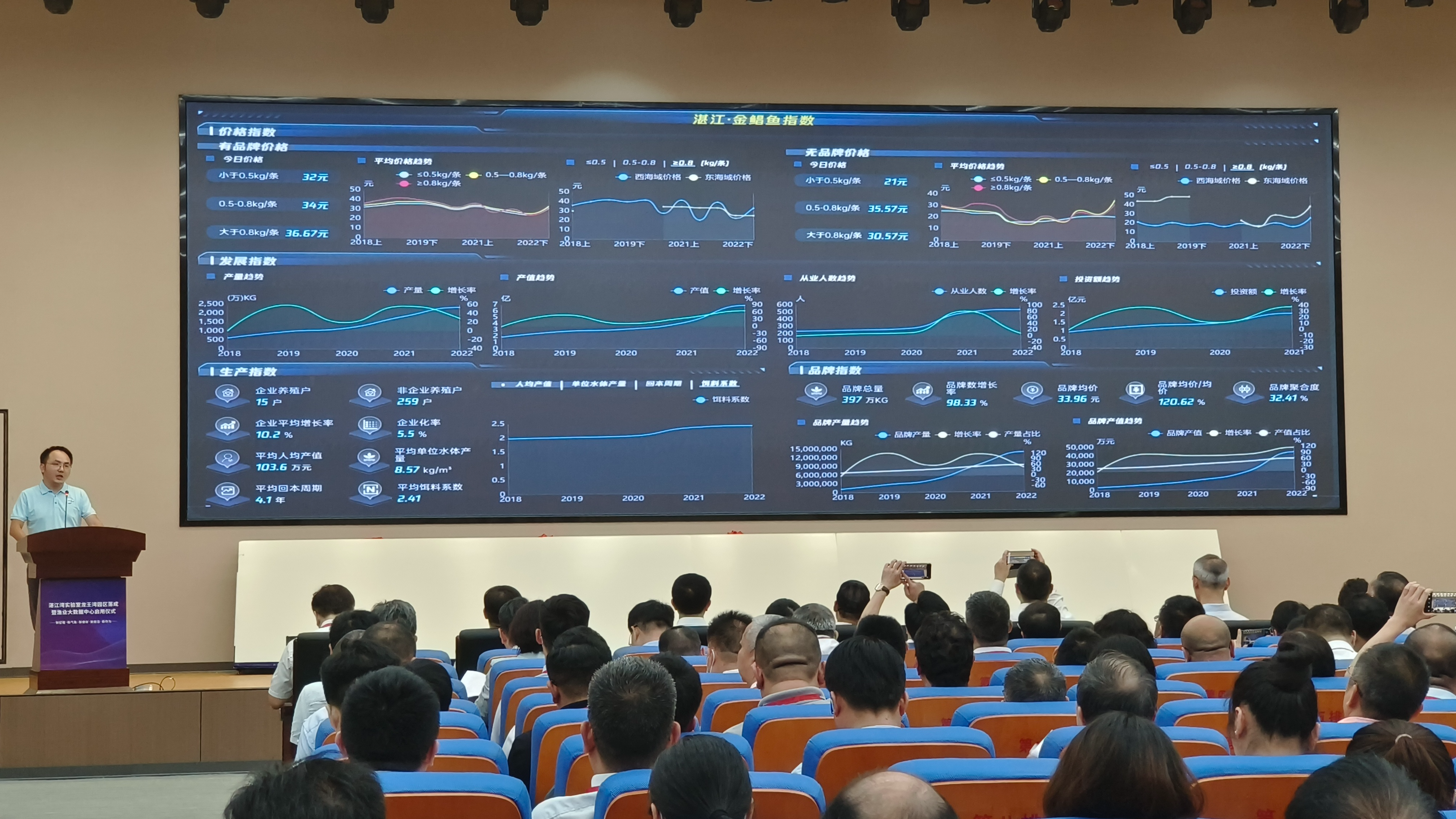 6月29日,湛江湾实验室智慧渔业大数据中心启用,致力于实现深远海养殖系统统一管理,将以数据收集、数据储存、数据分析和指数发布来服务深远海养殖产业的发展。湛江是“中国金鲳鱼之都”,为了促进产业与数字化深度融合,全方位塑造行业风向标,当天,中心围绕价格、发展、生产、品牌四个维度发布了“湛江·金鲳鱼指数”。