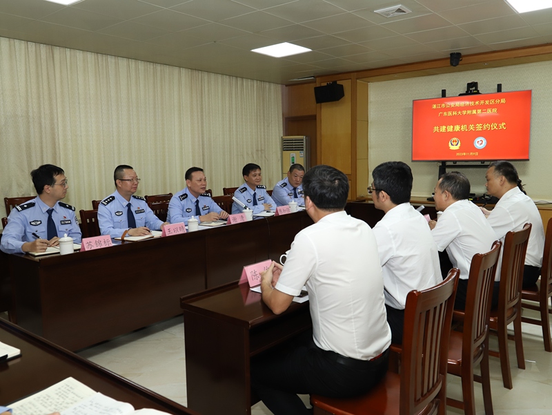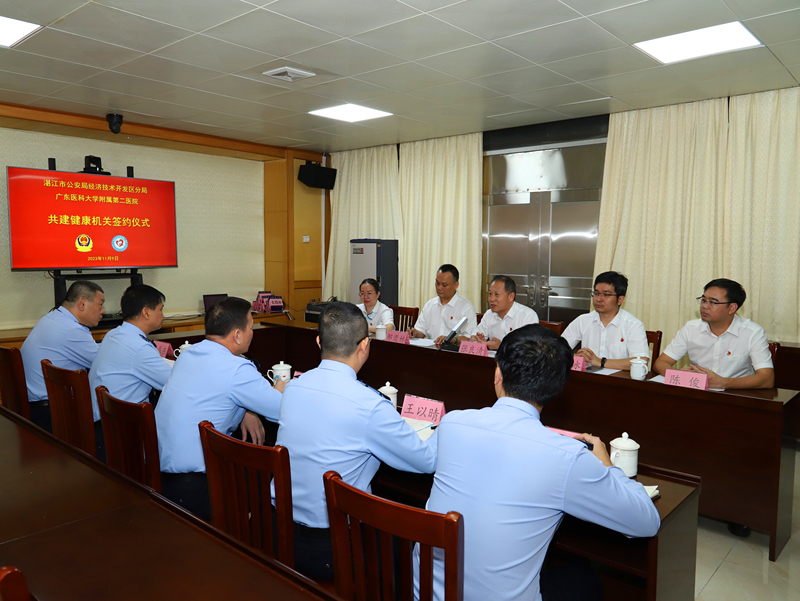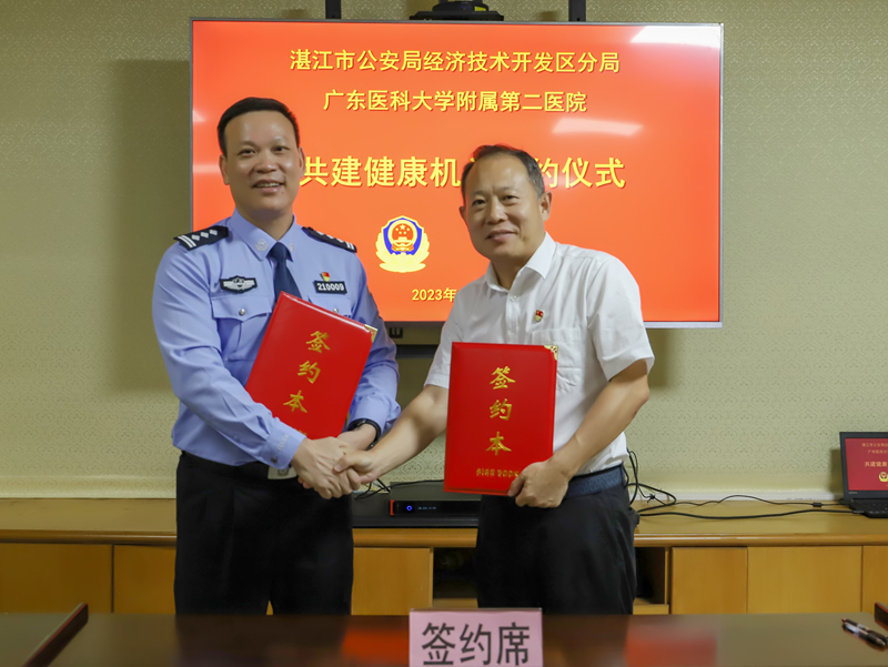 11月9日下午,经开区公安分局与广东医科大学附属第二医院举行“共建健康机关”签约仪式。市公安局党委委员、经开区公安分局党委书记、局长谢清,广东医科大学附属第二医院党委副书记、院长张良清参加签约仪式并致辞。经开区公安分局党委副书记、政委陈知强主持仪式。
