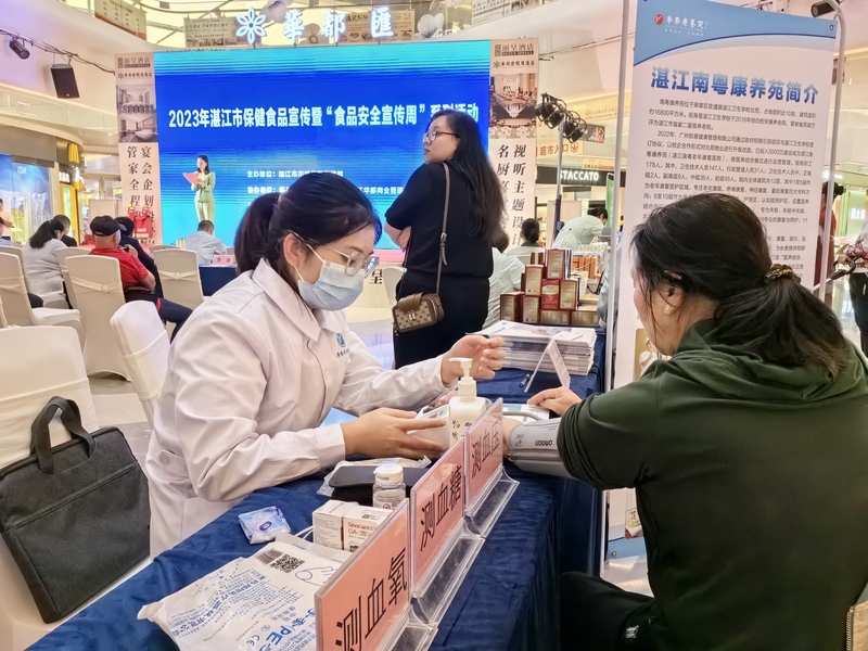 活动现场还提供免费测量血压、血糖服务,设置咨询台为消费者答疑解惑。此外,湛江地区7家知名保健食品相关企业也来到现场进行产品展示和宣传,向消费者讲解保健食品的基本知识、选购技巧等,旨在提高消费者对保健食品的认识和辨别能力,引导消费者理性消费、科学养生。