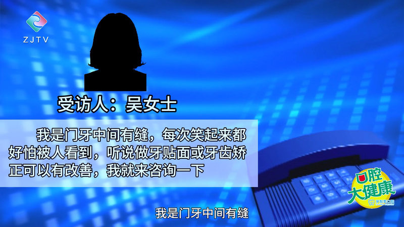 市民吴女士因两颗前门牙的缝隙问题,对容貌自信、人际交往和生活质量造成影响。
