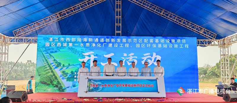 3月29日,湛江市西部陆海新通道创新发展示范区配套基础设施项目子项目——园区西城第一水质净化厂建设工程、园区环保基础设施工程开工。副市长陈峻华出席工程开工活动。