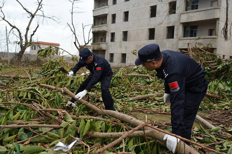 当天上午,湛江边检站20余名民警职工冒着蒙蒙小雨来到湛江徐闻县。受超强台风“摩羯”过境期间强风暴雨影响,徐闻县内遍地倒伏树木、倒塌广告牌、高楼掉落物、生活垃圾等物,对当地生产生活造成了较大干扰,也对人民群众的人身财产造成了危险隐患。该站民警职工到达徐闻后,立即投入灾后设施修缮、垃圾清理、树障清除等工作中,全力以赴做好台风后民生保障工作。
