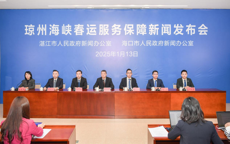 1月13日上午,湛江市人民政府新闻办公室、海口市人民政府新闻办公室联合在湛江召开琼州海峡春运服务保障新闻发布会。