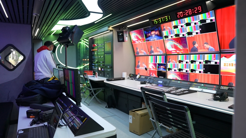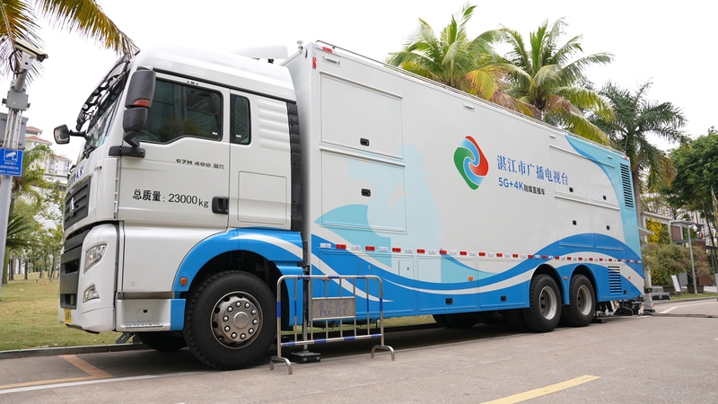 本次直播开幕会采用湛江市广播电视台的5G+4K超高清转播车,该车采用4K 12G设计,6+4+2迅道系统,具备4K、HDR宽色域和5.1环绕声 音频制作能力,还具备竖屏和新媒体制作,5G传输功能,能够完成重大活动、综艺晚会等大型节目现场录制工作,实现广播电视 “多媒体形态、多信息服务、多网络传播、多终端展现”,将带给代表委员和全市人民全新的、最优质的视听体验。