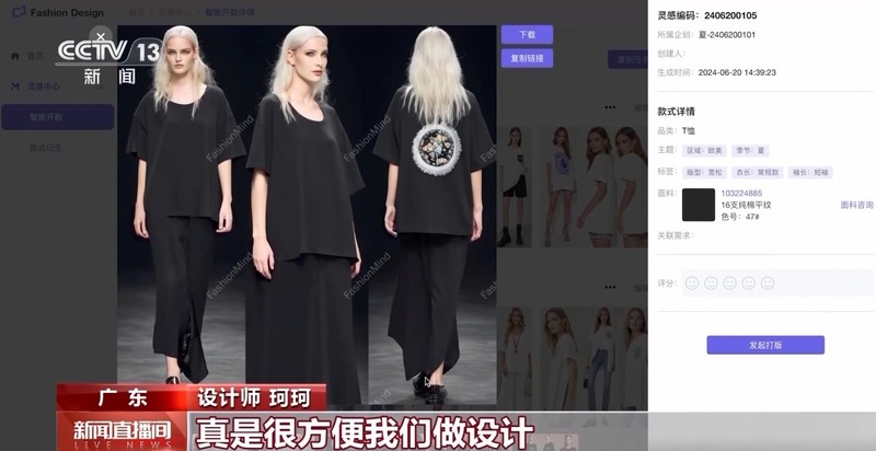 这款由当地企业研发的时尚大模型,将织物质感、花色晕染等100多项标签数据化,让大数据成为设计的灵感海洋。