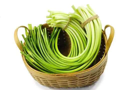 蒜苔富含膳食纤维、维生素C、维生素A以及钙、磷等矿物质,还含有大蒜素等活性成分,具有抗菌和抗氧化作用,是一种营养丰富的健康蔬菜。
