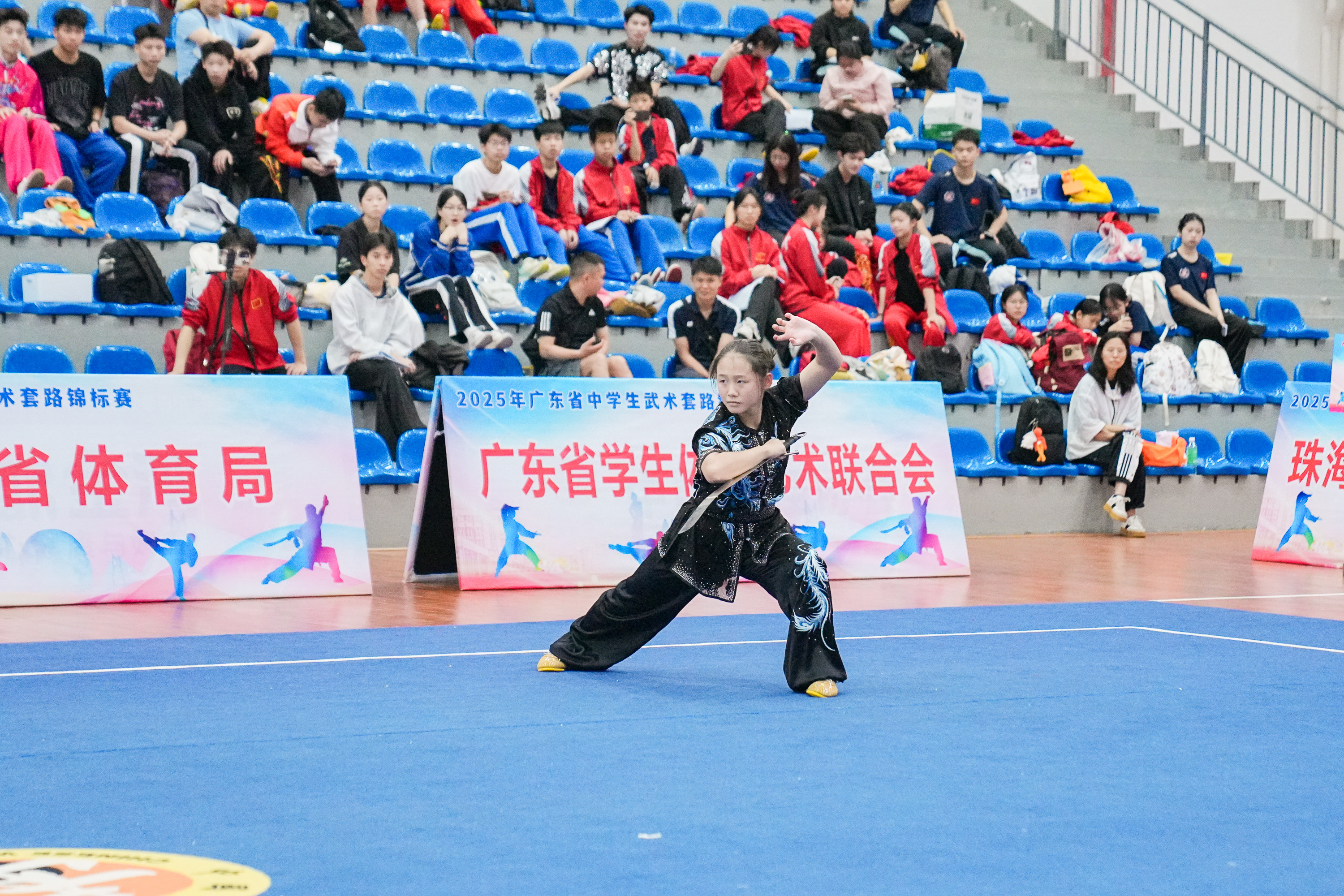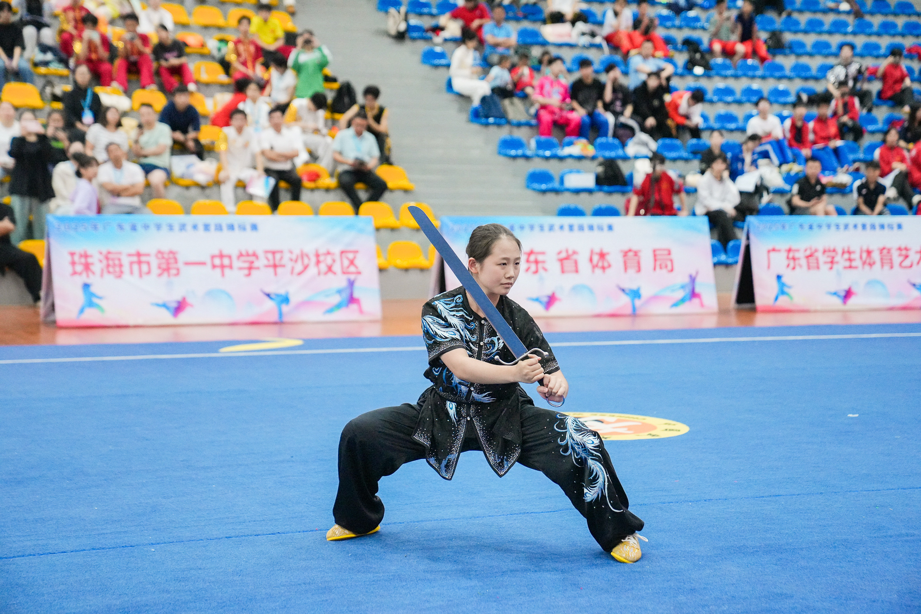7月17日,广东省第十四届中学生运动会武术套路赛场传来捷报:湛江市少林学校学子龙霆技压群芳,勇夺女子高中组自选南刀冠军,为湛江斩获赛事首金及武术项目首金!同门陈柏林以行云流水之姿问鼎男子高中组自选太极剑冠军,钟林俸再添一铜,尽显湛江武术风采。