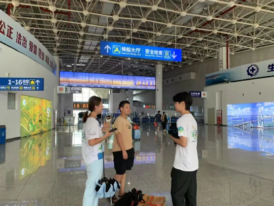 第二天,实践团走进海安新港与徐闻港调研港口运营情况。作为联接海南与内陆的“黄金通道”,海安新港与徐闻港在客货流通、港口经济中发挥着重要作用。通过走访港口工作人员及旅客,实践团发现,随着海南自贸港建设深入推进,两港正从运输节点向综合服务枢纽转型,但在客流高峰期调度、配套服务优化等方面仍有提升空间。据此,实践团成员提出了港口智慧化升级等意见建议。