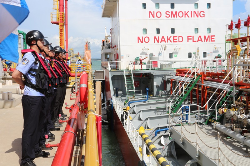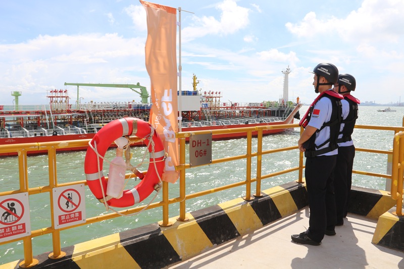 8月26日10时30分,载着进口原料的中国籍“恒晖69”轮缓缓靠泊巴斯夫湛江一体化基地项目液体散货码头,湛江边检站制定“一船一策”勤务方案,高效保障巴斯夫首艘国际航行船舶顺利入境。