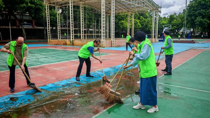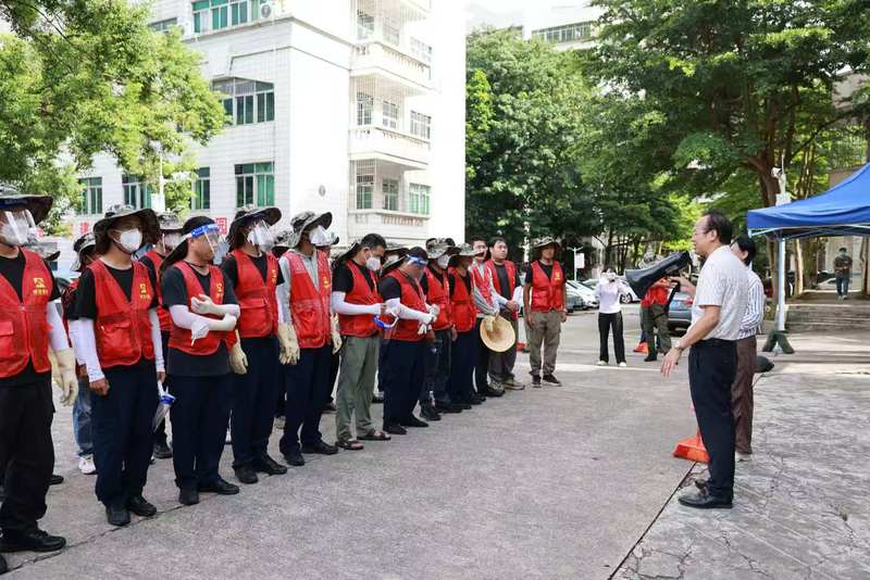 今天下午,记者走访湛江市卫生学校看到,老师们手拿工具对户外的操场、草坪、树丛等学生经常活动场所进行清垃圾、消杀作业等, 同时清除积水,消灭蚊幼虫孳生地,从源头阻断蚊虫繁殖。