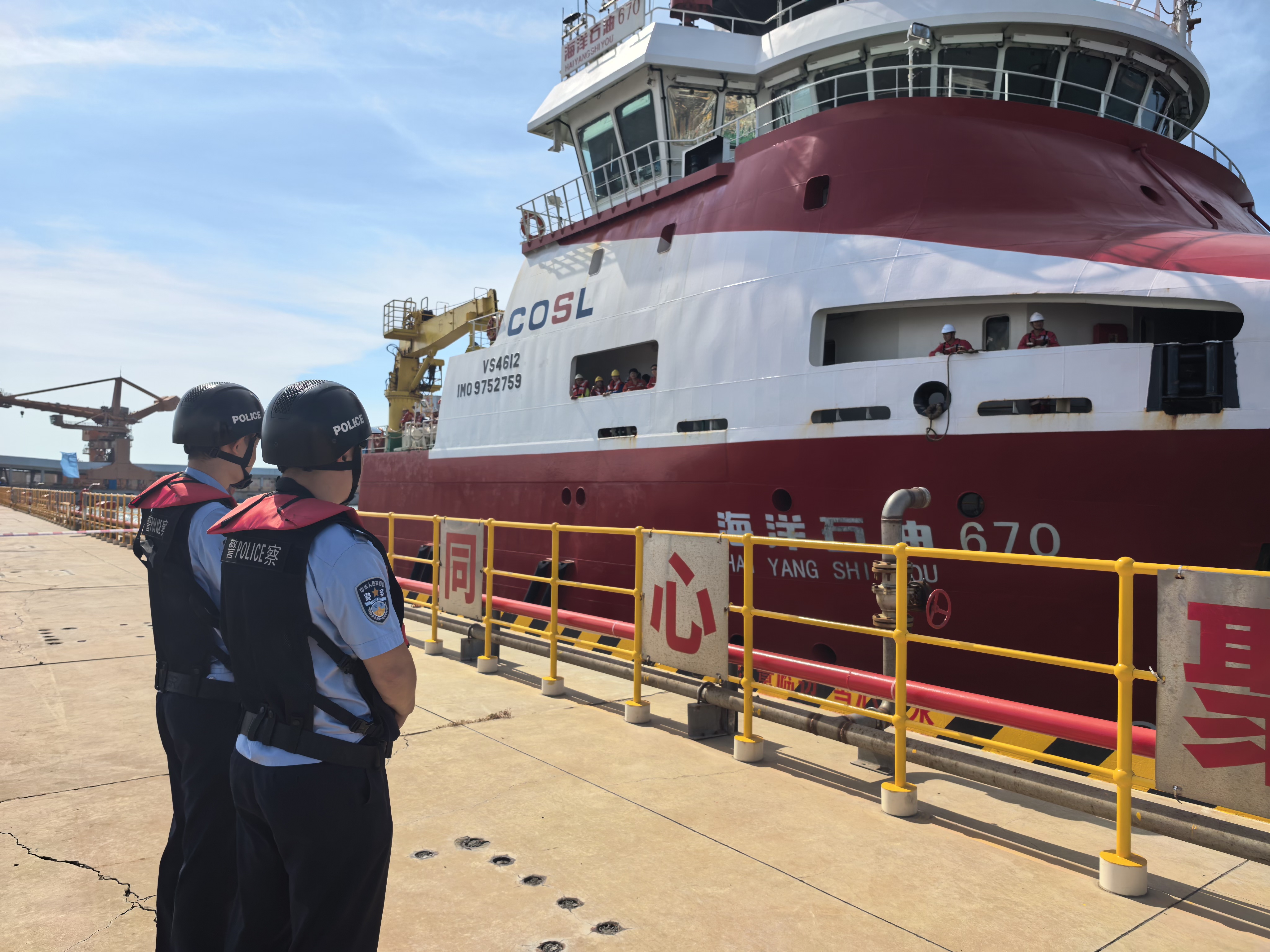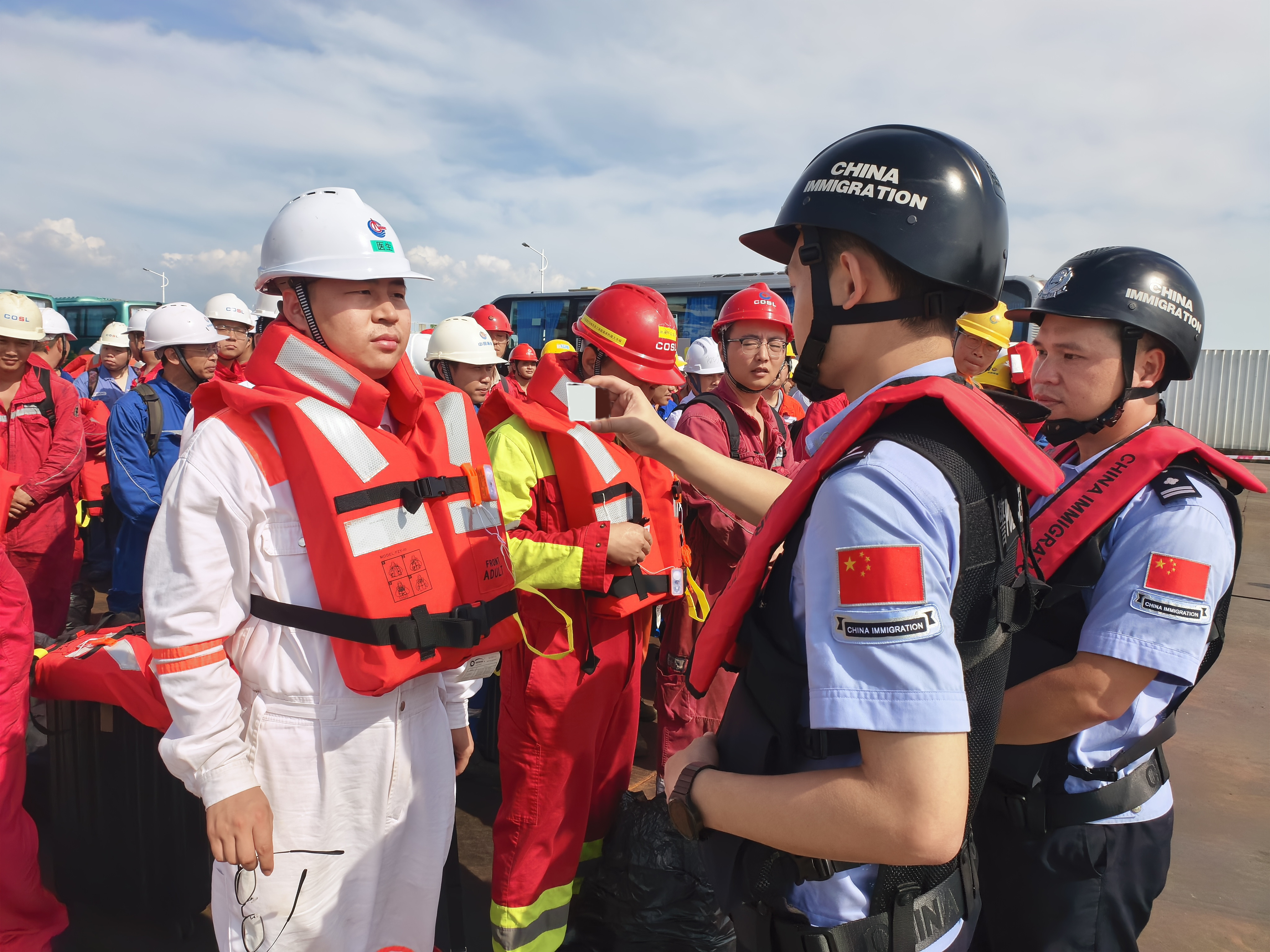 作为我国首个全方位绿色设计的海上油田群,乌石油田群位于北部湾海域,距离海岸线近23公里,由三座海上平台组成。为规避台风过境风险,油田运营方快速敲定撤离方案,安排应急船舶前往平台接运人员。期间,湛江边检站还主动对接口岸联检单位,实时跟踪撤离船舶动态,对载运撤离人员的船舶实行“即到即检、优先通行”。