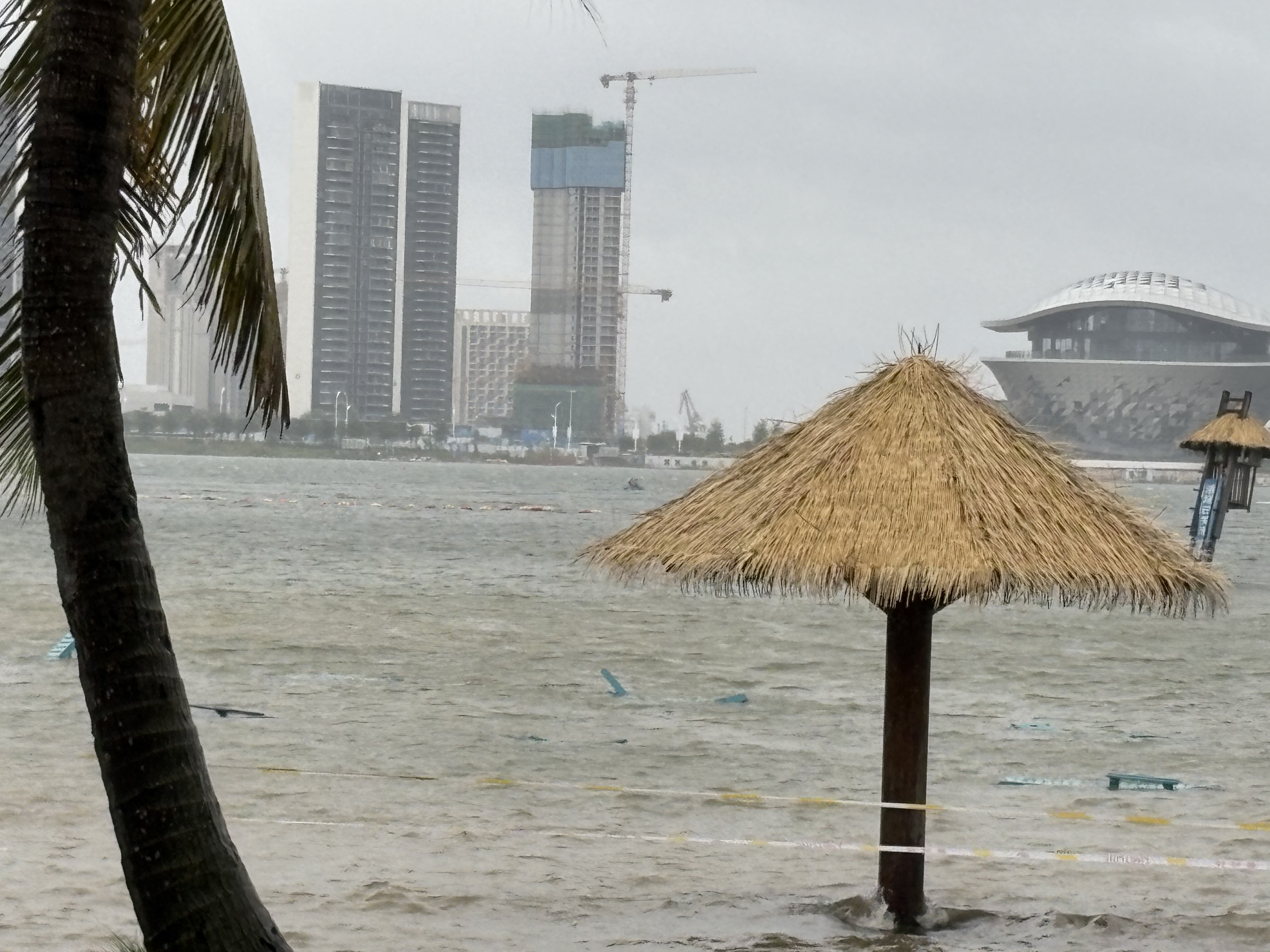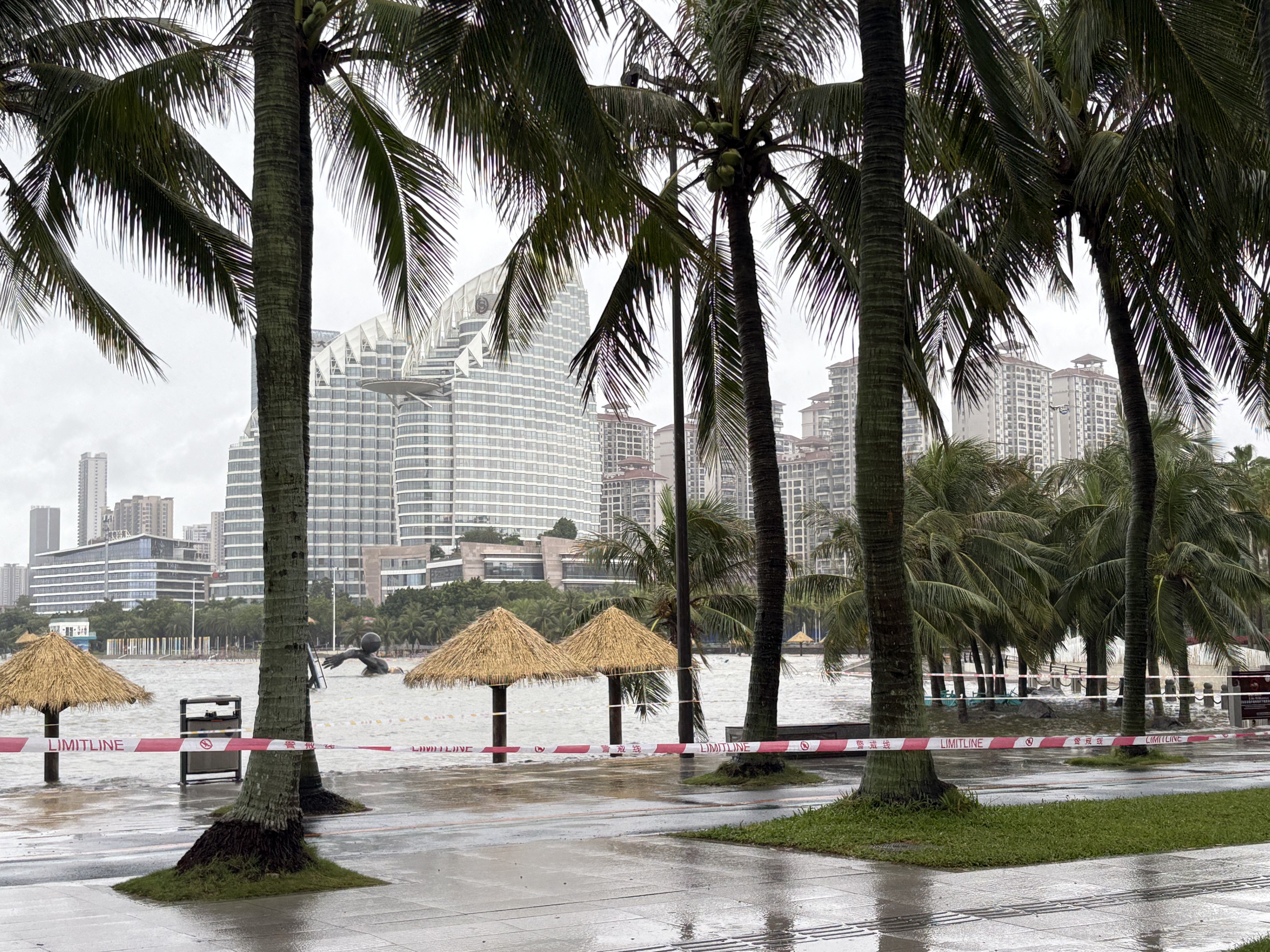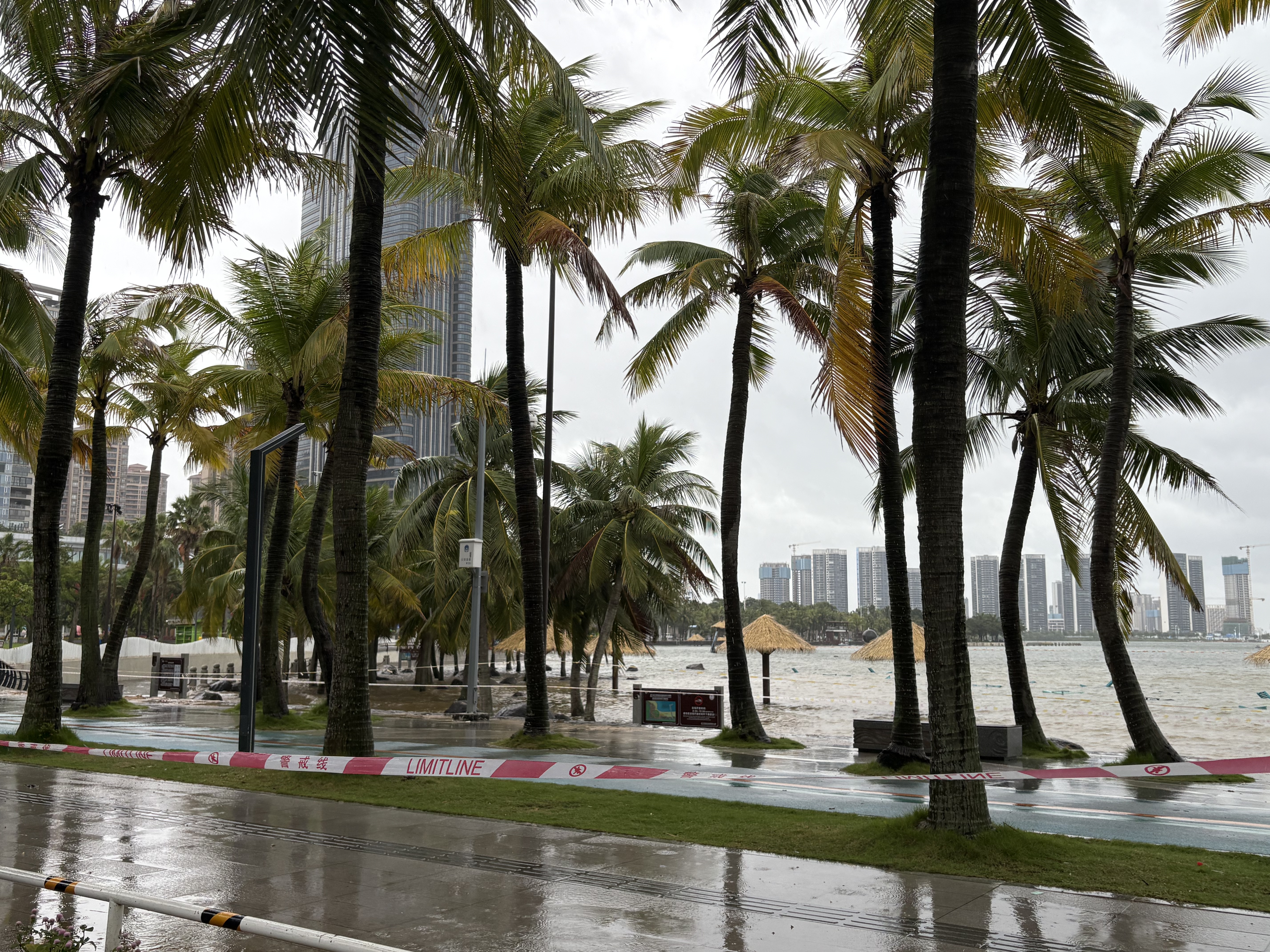 一线记者直击:上午10点,金沙湾景区已全面关闭,海水涨到岸边