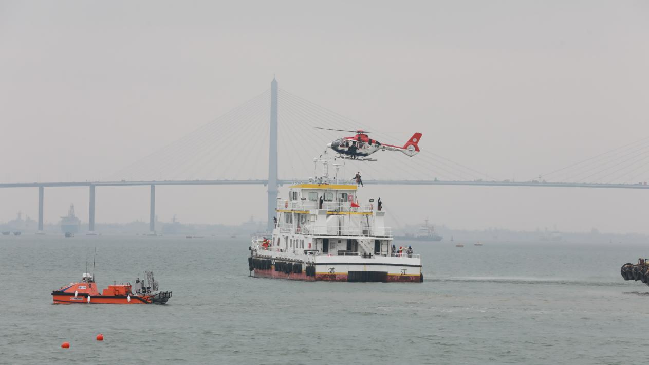 本次演练模拟台风“卡努”登陆引发的多重险情,多部门协同参与,开展船只碰撞救援、大规模停电抢修、柴油泄漏事故处置及光伏电站火灾扑救等场景演练。现场投入直升机、侦检机器狗、举高喷射车等先进装备,实现复杂环境下能源设施应急响应的智能化、精准化处置,通过多设备协同、海陆空联动,快速排除险情,完成救援、抢修等任务,筑起一道守护能源安全的坚实壁垒。