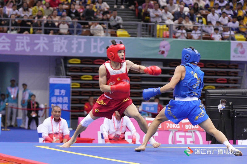 11月14日,第十五届全国运动会武术散打比赛在湛江奥体中心体育馆激战正酣,目前赛程已顺利过半,各项目四强名单揭晓。其中,在男子60公斤级项目1/4决赛里,广东队选手王艺霖惜败江苏队选手唐思硕,止步八强。