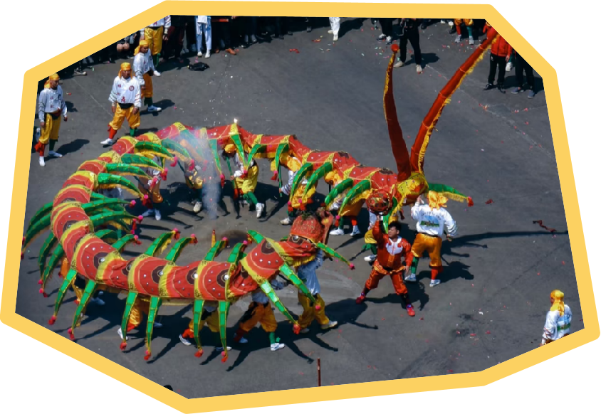 飘色、貔貅叠罗汉、傩舞