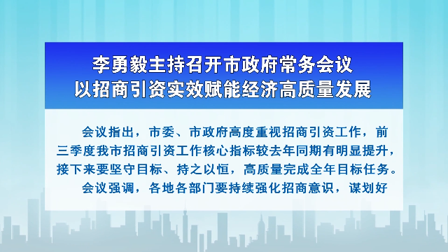 李勇毅主持召开市政府常务会议以招商引资实效赋能经济高质量发展