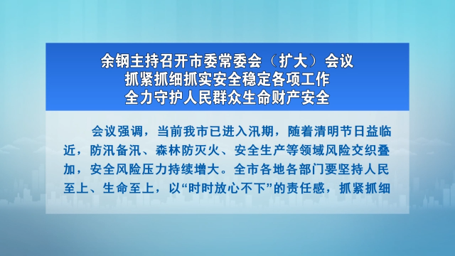 余钢主持召开市委常委会(扩大)会议 抓紧抓细抓实安全稳定各项工作 全力守护人民群众生命财产安全