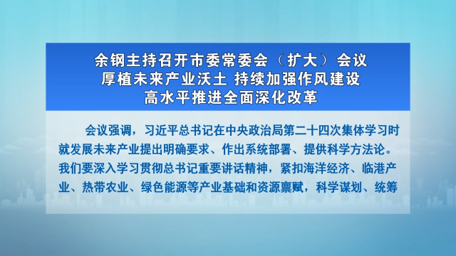余钢主持召开市委常委会(扩大)会 厚植未来产业沃土 持续加强作风建设 高水平推进全面深化改革