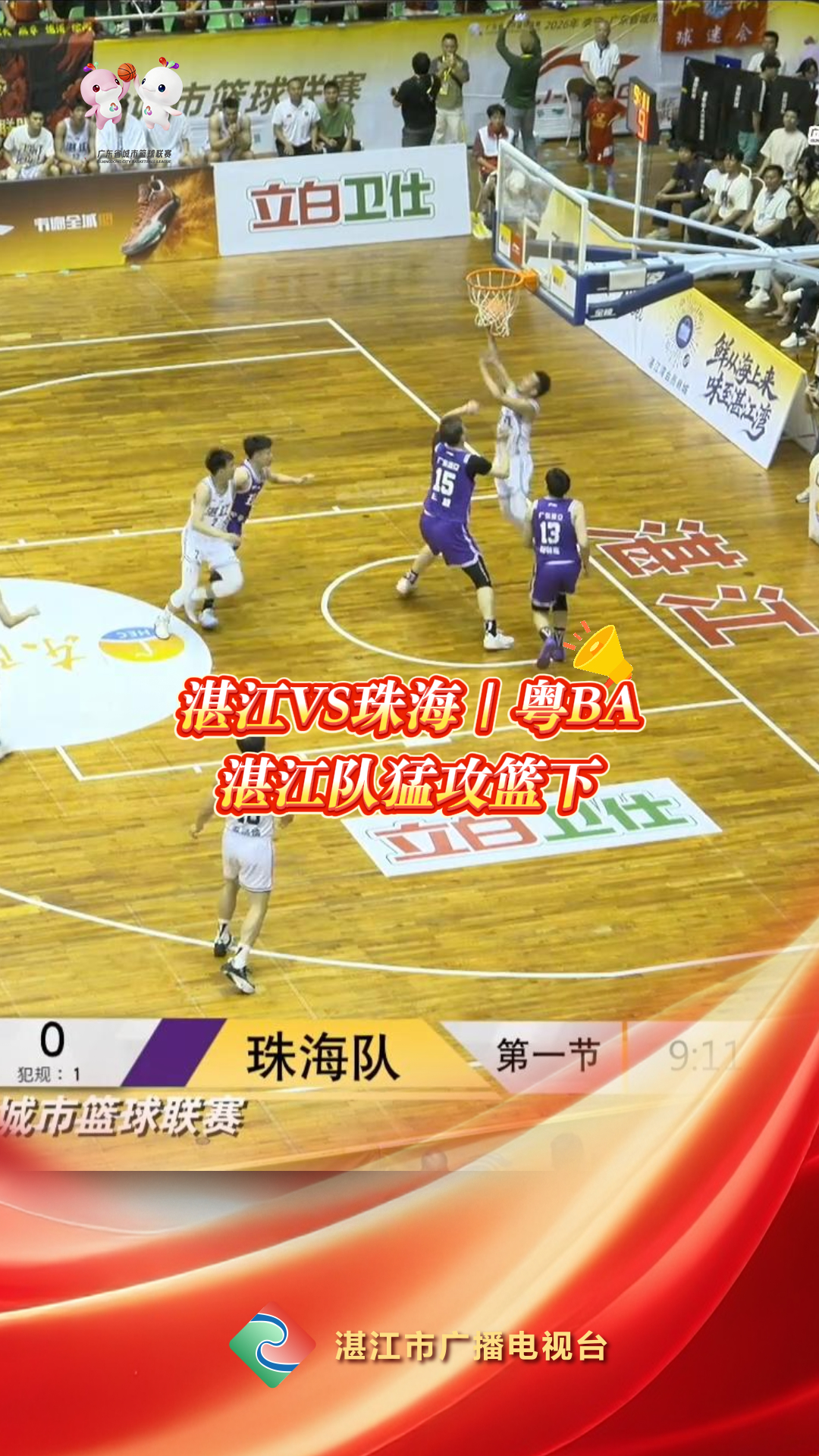 比赛开始,湛江队不断攻击珠海队篮下区域,获得2分。#湛江 VS #珠海 #粤BA (编辑恩助)