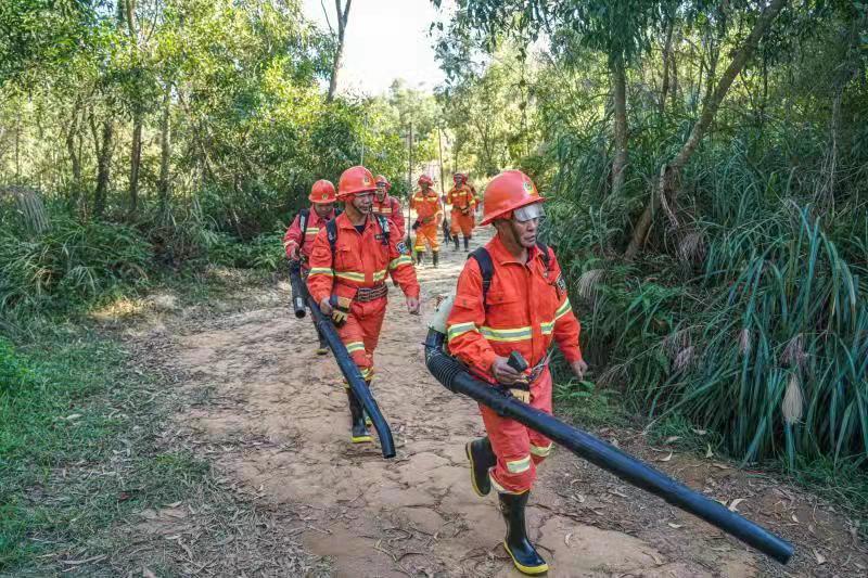 当前,正值风干物燥的冬季,处于森林火灾易发期,全市已全面进入森林防火期。11月27日,湛江市应急管理局与市三岭山森林公园管理处组织湛江市森林消防机动大队在森林公园内开展森林防灭火应急演练,并深入乡村开展森林防火宣传,强化全民防御森林火灾的意识,共同筑牢森林消防安全防线。