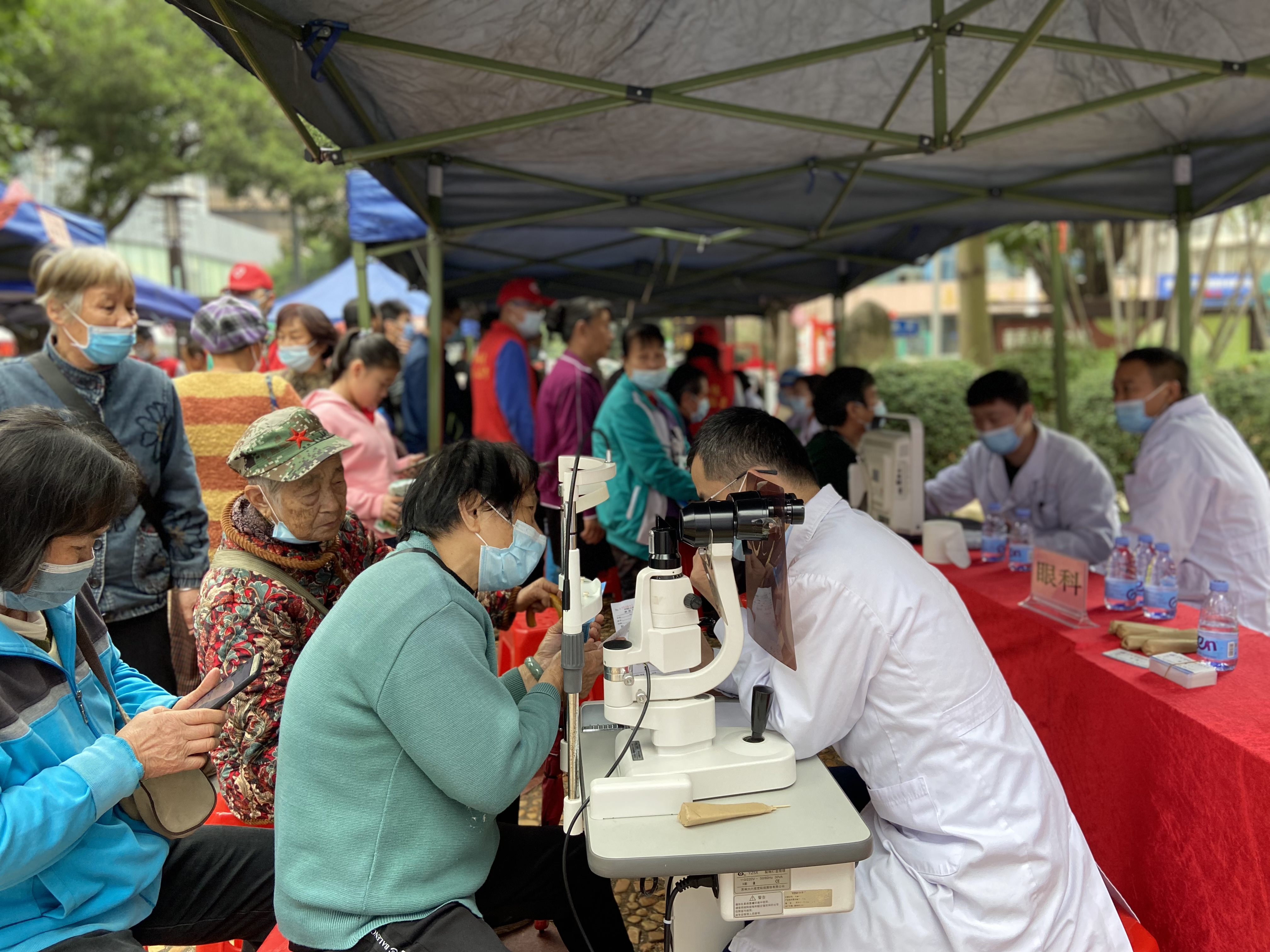 此次活动主要为居民提供测量血压、血糖、甲状腺筛查、眼科裂隙灯检查、耳鼻喉检查等服务。医护人员还根据检测数值,给出合理的饮食建议,并现场免费为居民发放部分日常非处方药品。