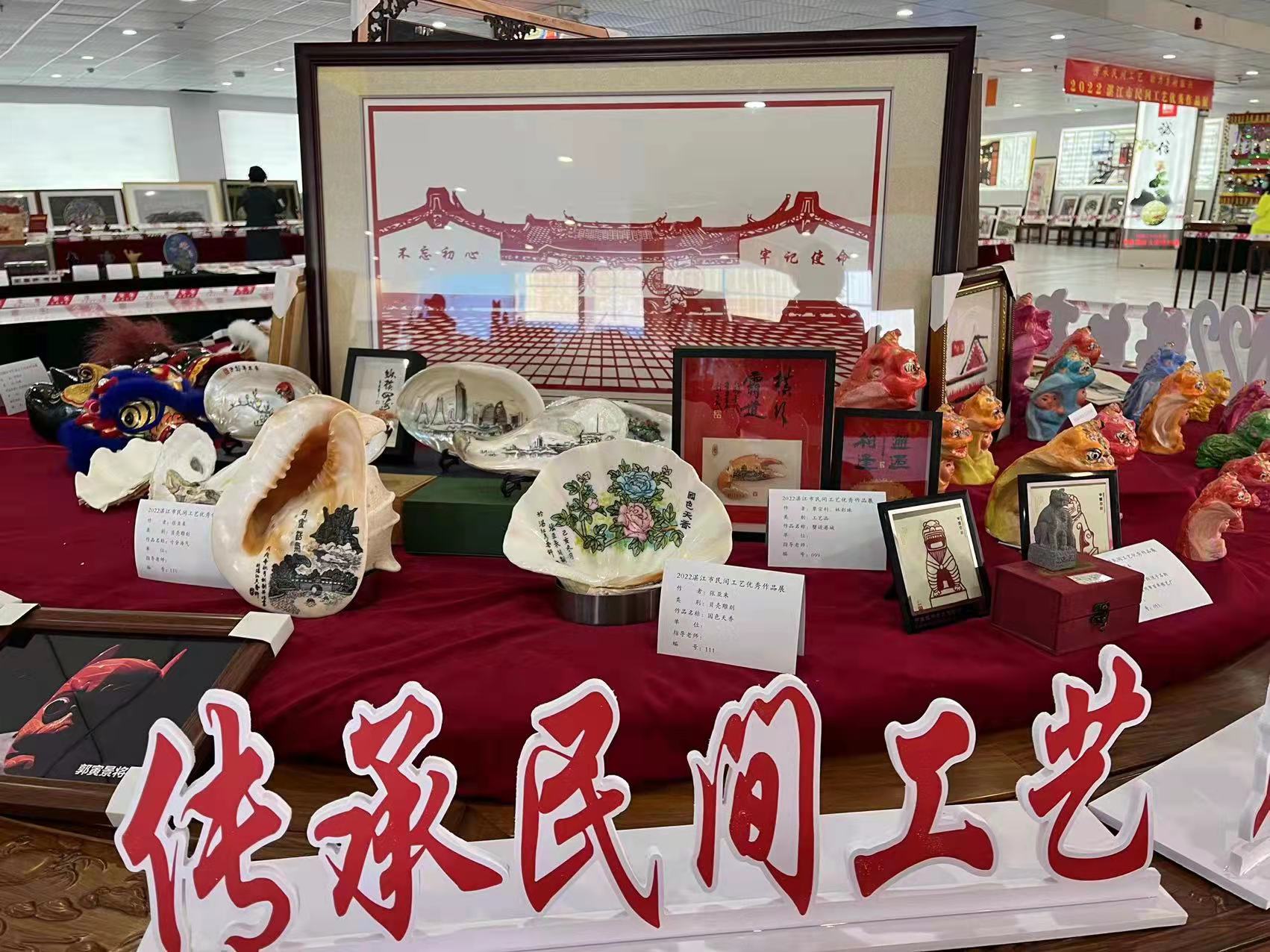 200件展品富于艺术气息,独具地方特色,体现我市民间工艺的新风格、新动态、新发展,百位文艺家的精品力作争奇斗艳,璀璨云集,各具特色的民间工艺交织共舞。同期展出的湛江民俗画、书刻、传承作品展览,遂溪非遗、手信文创、乡村振兴等产品展示,为新年之际的湛江献上丰盛的文艺大餐。