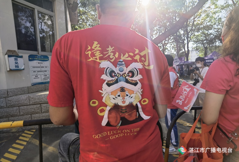 早上七点半过后,考点外送考家长和老师陆续多了起来,记者在现场发现,不少家长和老师为了讨一个“好彩头”,纷纷在衣服上、口罩上“大做文章”,佩戴印有“高考必胜”、“逢考必过”的红金色口罩,不少家长穿上了红色或粉色的T恤,还手持金榜题名字样的小旗子,还有家长身着散发着古典美的各色旗袍寓意“旗开得胜”。