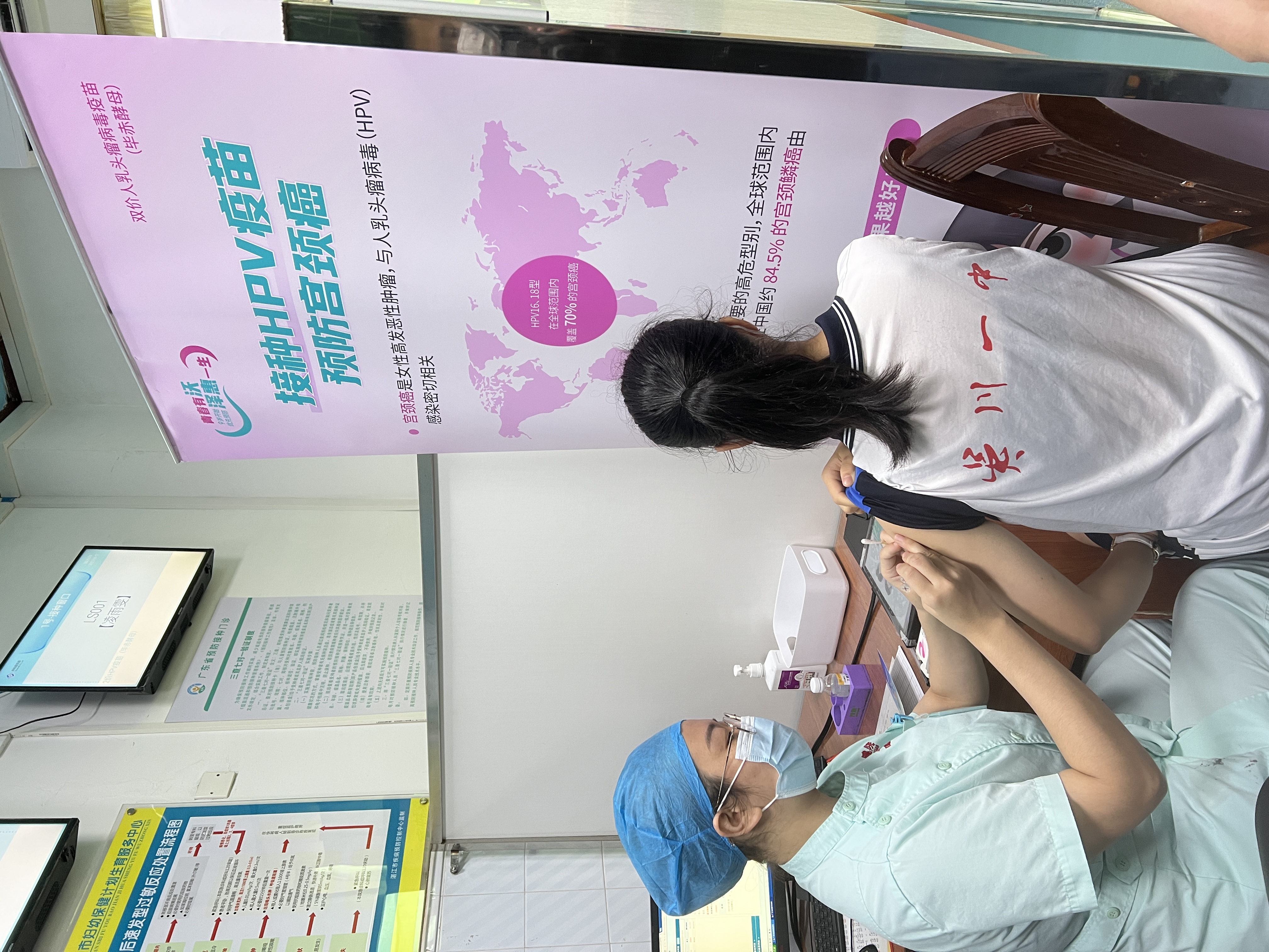 6月17日上午,今年初中二年级的小怡同学在签署知情同意书后成为了湛江首位接种毕赤酵母二价HPV疫苗的女性。