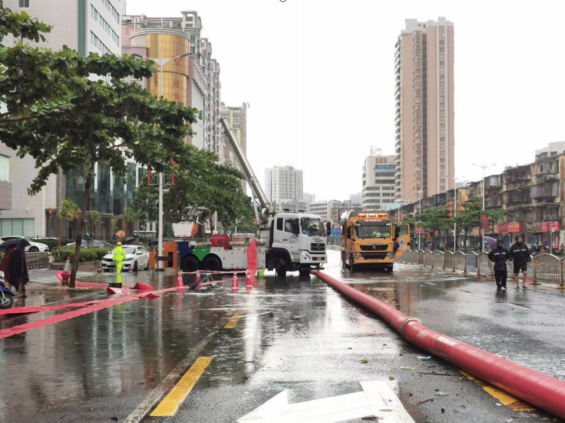 在完成紧急强排作业后,广州排水公司的支援队伍马不 停蹄地赶往霞山、赤坎、东海岛等地开展支援作业,逆风而 行,用无私的奉献与兄弟城市携手筑起城市正常运行的安全 防线。(通讯员:钟娜)